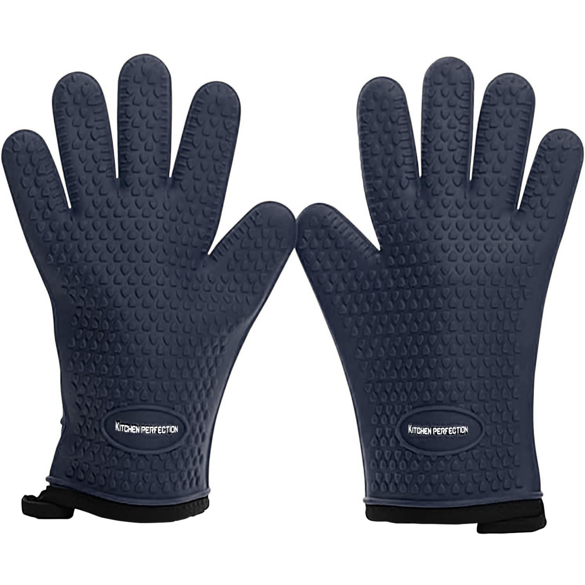 KITCHEN PERFECTION Silicone Smoker Oven Gloves - Extreme Heat Resistant BBQ Gloves - Handle Hot Food Right on Your Smoker Grill Fryer Pit | Waterproof