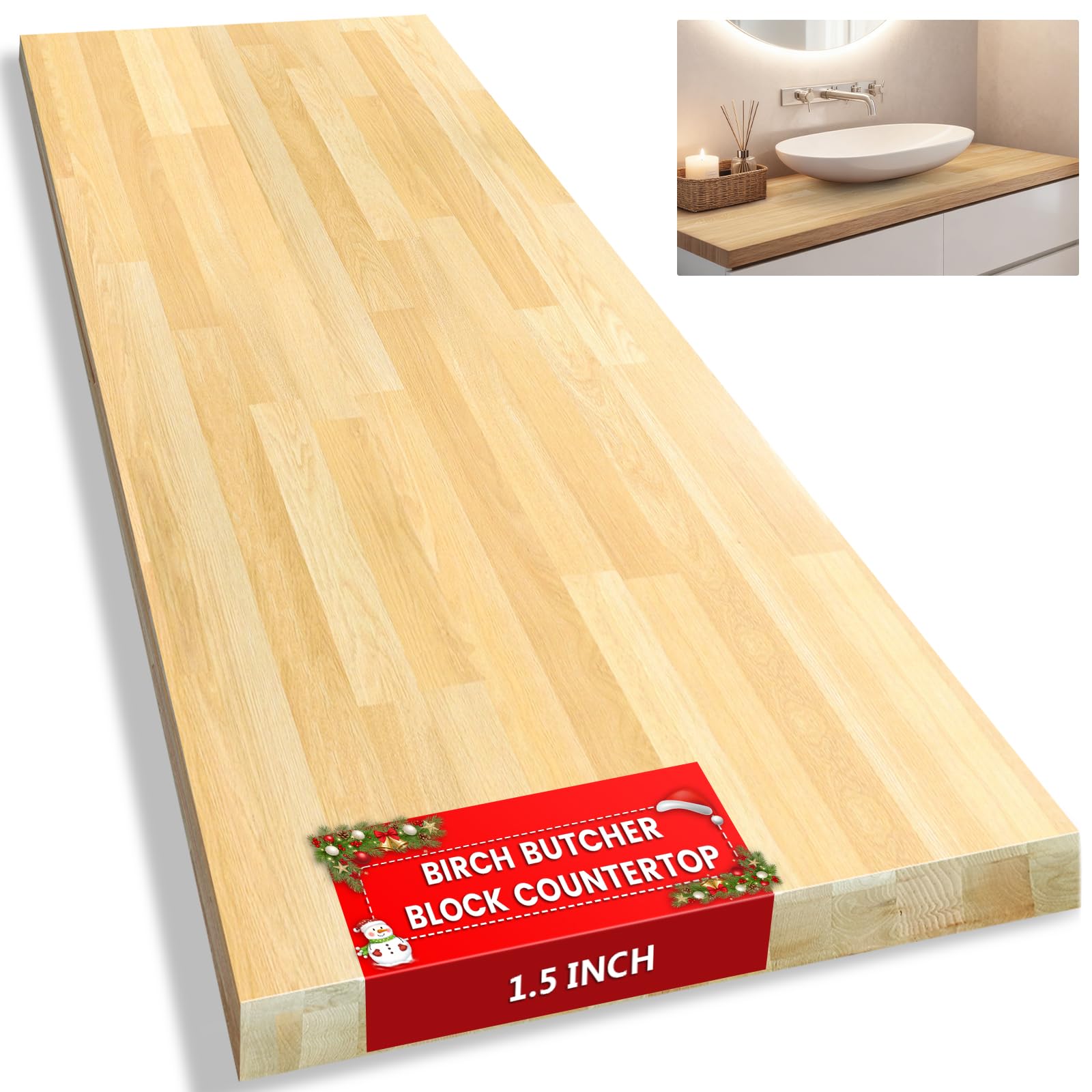Butcher Block Countertop, Solid Wood Table Top - 4ft Unfinished Birch Work Bench Top Cut to Size for DIY Desktop/Washer Counter/Office Desk/Kitchen