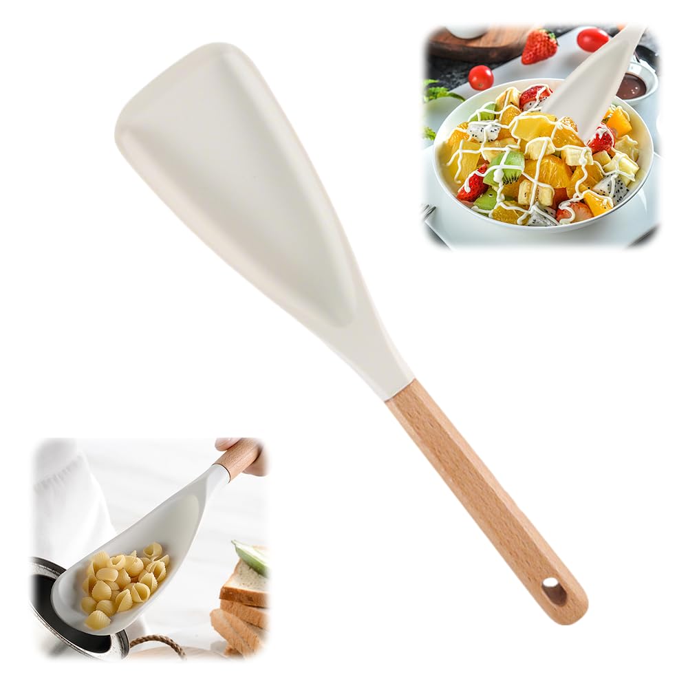 Multi-function Spatula Spoon, 2025 New Cooking Spoon for Nonstick Cookwares, Silicone Cooking Utensils for Kitchen Gadgets,Wood Handle Spoon for