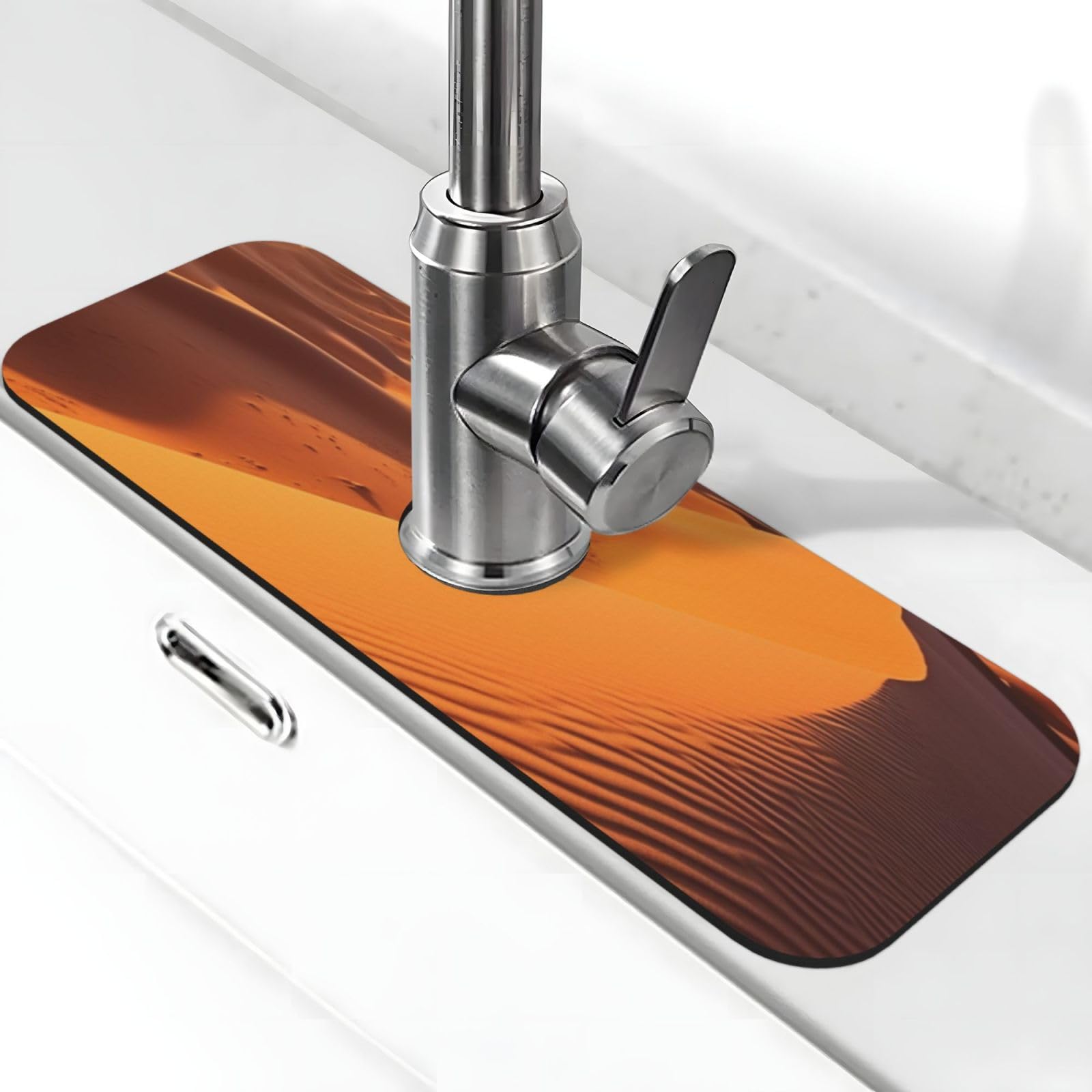Super Absorbent Drying Pad: Made from premium diatomite, our Sand Dunes in The Sahara Desert faucet mat efficiently absorbs water, preventing leaks and spills on your countertops. Its porous structure ensures quick drying, keeping your sink area clean, dry, and free from water damage Non-Slip: 15" x