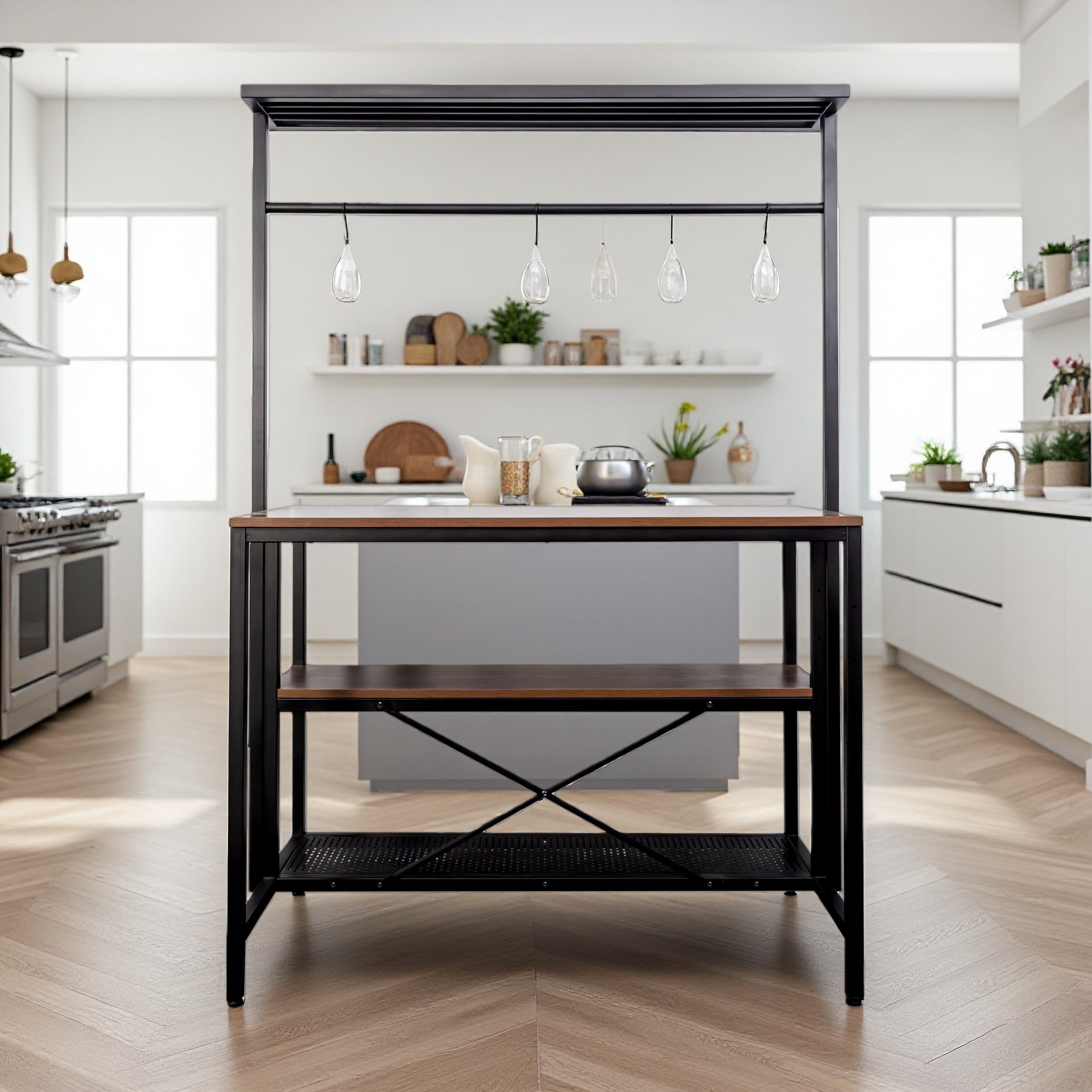 Description: This versatile kitchen island features ample storage and a spacious work surface. The internal storage shelves are adjustable, providing flexible space for your kitchen essentials.