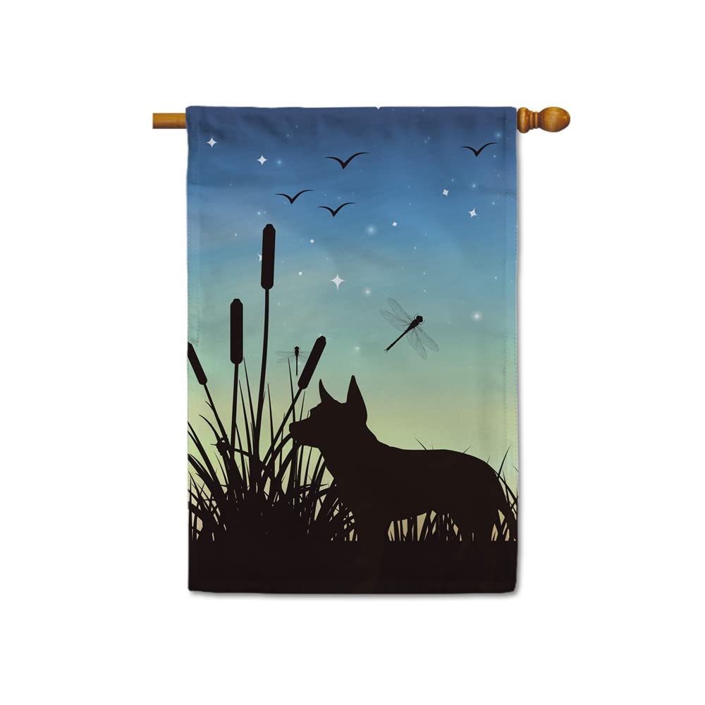 MALIHONG Silhouette Night Scenery House Flag Australian Cattle Dog Silhouette Dog Dragonfly Summer Yard Decoration Flag 28x40 Inch Vertical Double