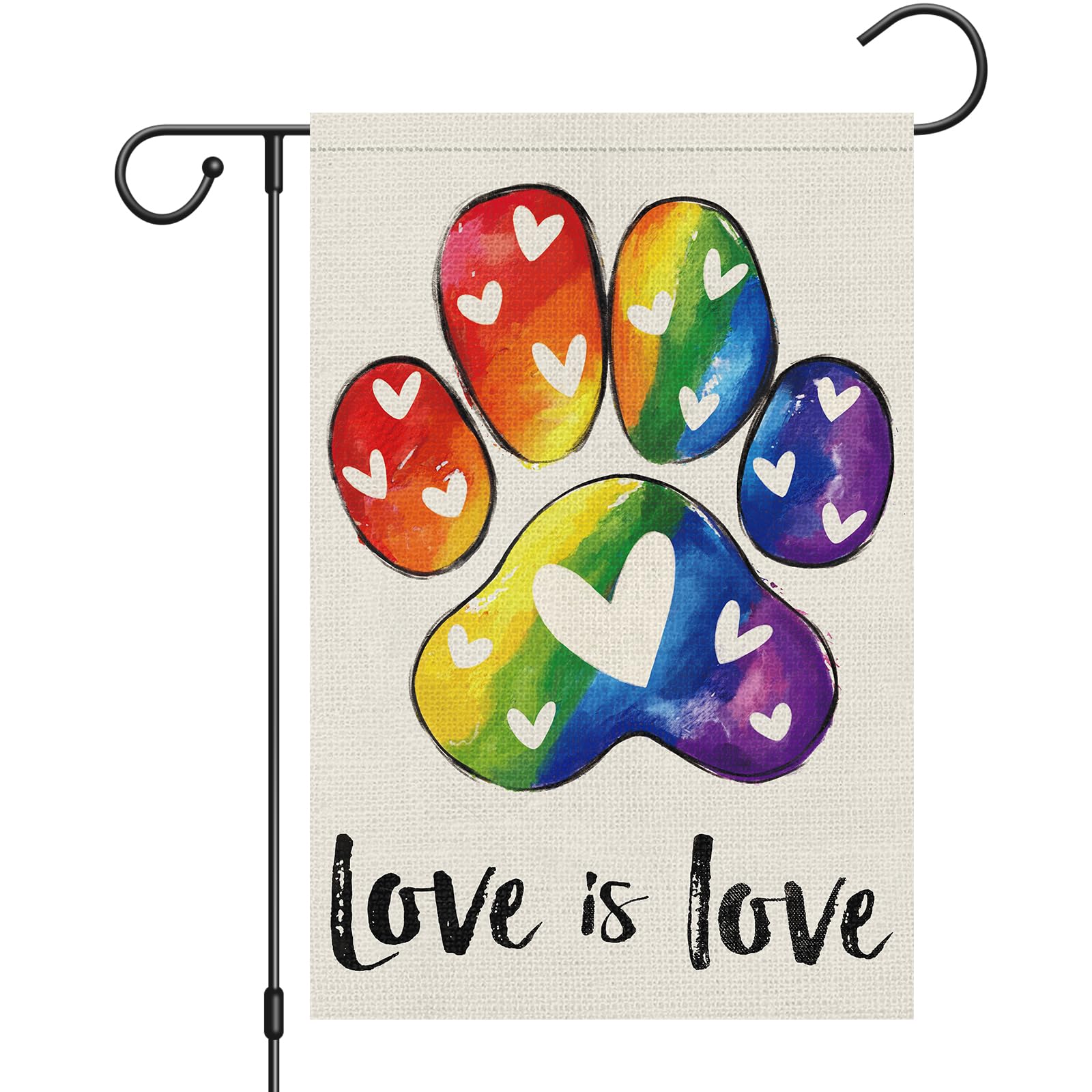 LOVE IS LOVE GARDEN FLAG - Our pride month garden flag is made of 100% Spun Polyester material, weather resistant,and fade-resistant. High-strength double stitching ensures durability. LGBT GARDEN FLAG SIZE - Gay garden flag is 12x18 inch, the hanging sleeve of lawn flag is 2 inch, it fits most stan