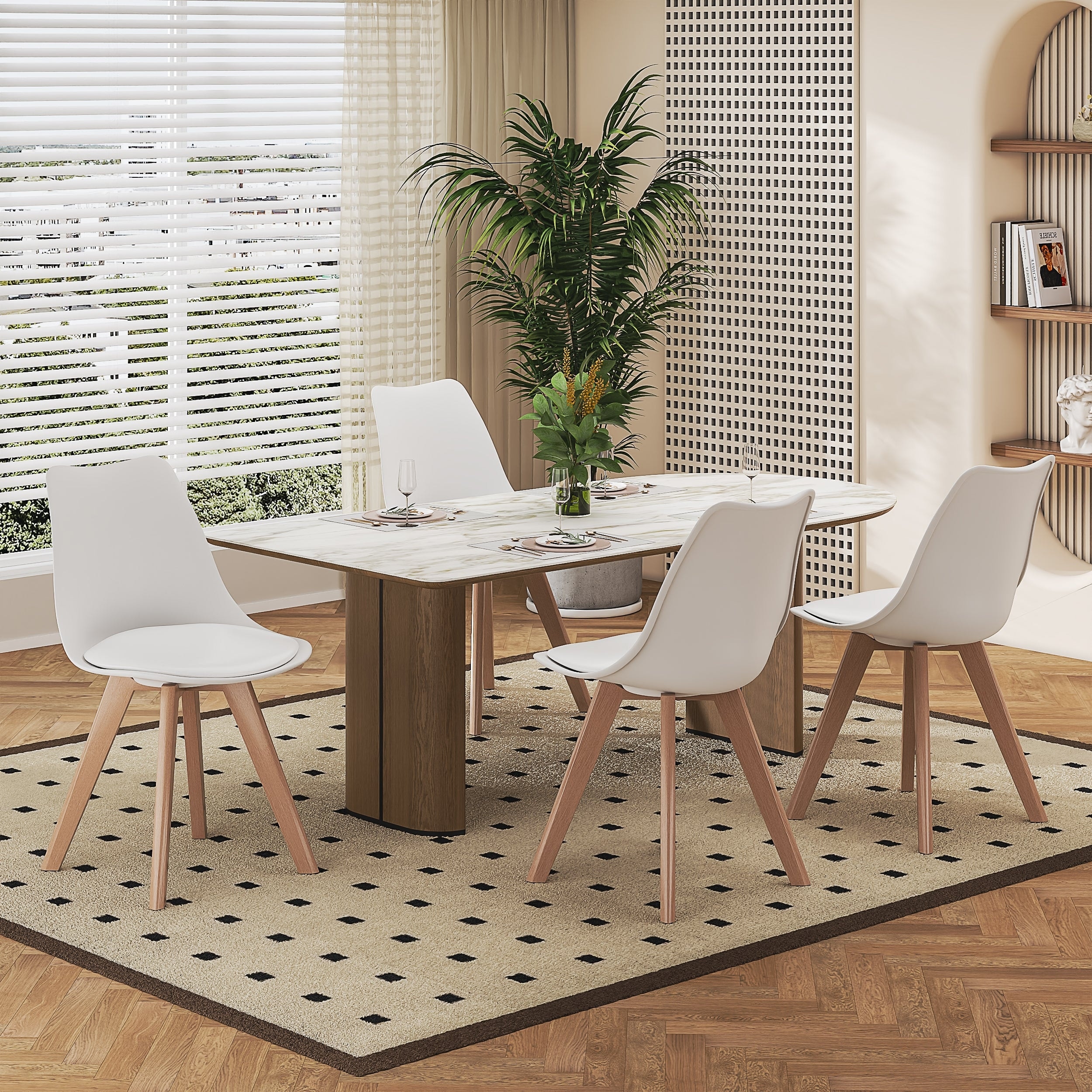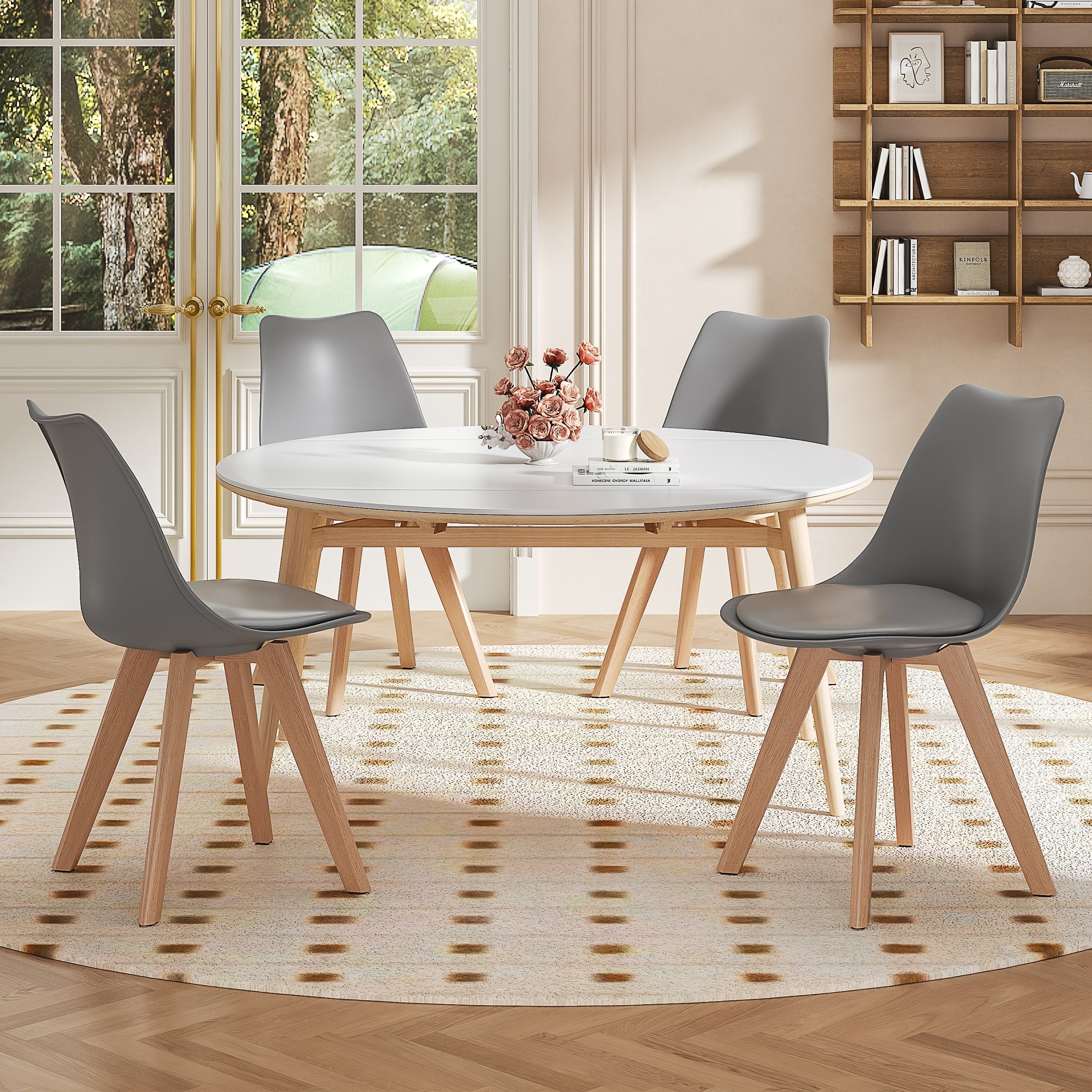 Set of 4 Modern Plastic Dining Chairs PU Leather Seat X-Frame Support Space-Saving Multifunctional Chairs for Living Room