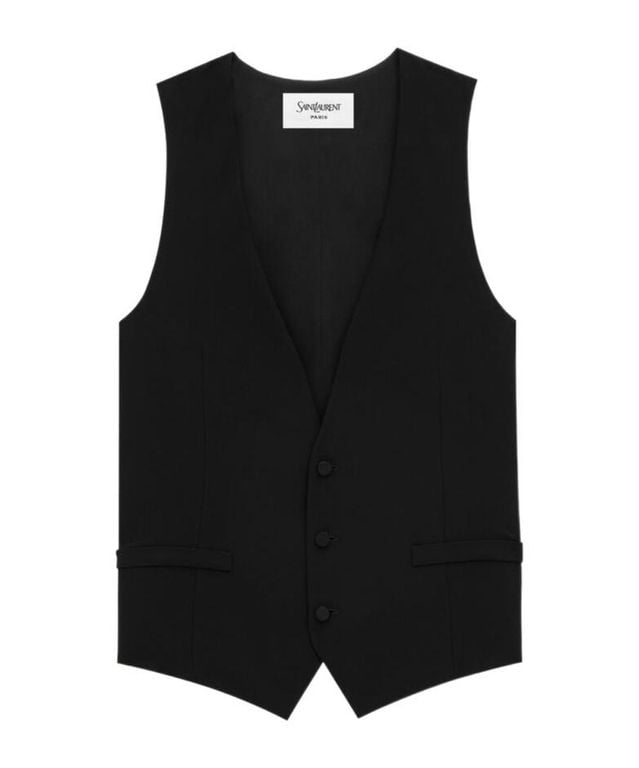 Men's Saint Laurent Vest - Black - Waistcoats Buttoned vest made with certified silk featuring a plunging V neckline CERTIFIED SILK front button closure two decorative welt pockets at the front plunging V neckline
