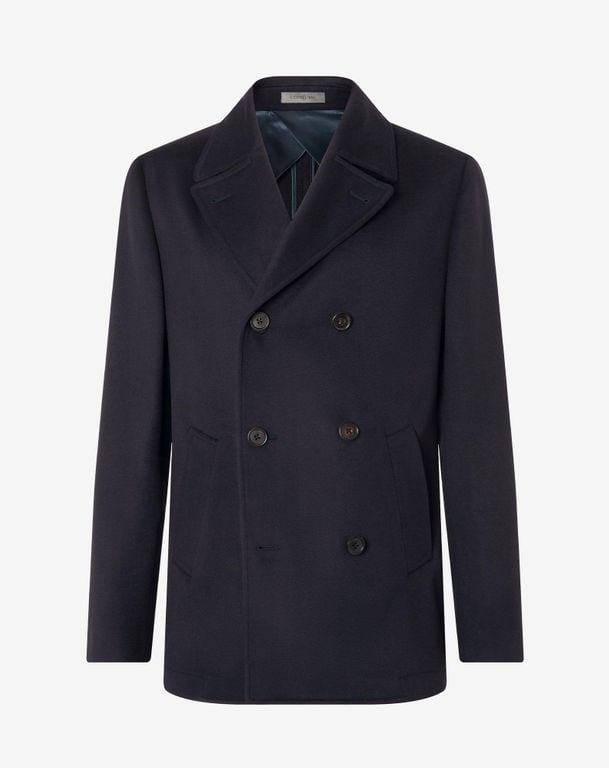 Super Fine Wool Beaver Peacoat - Blue - Corneliani Jackets