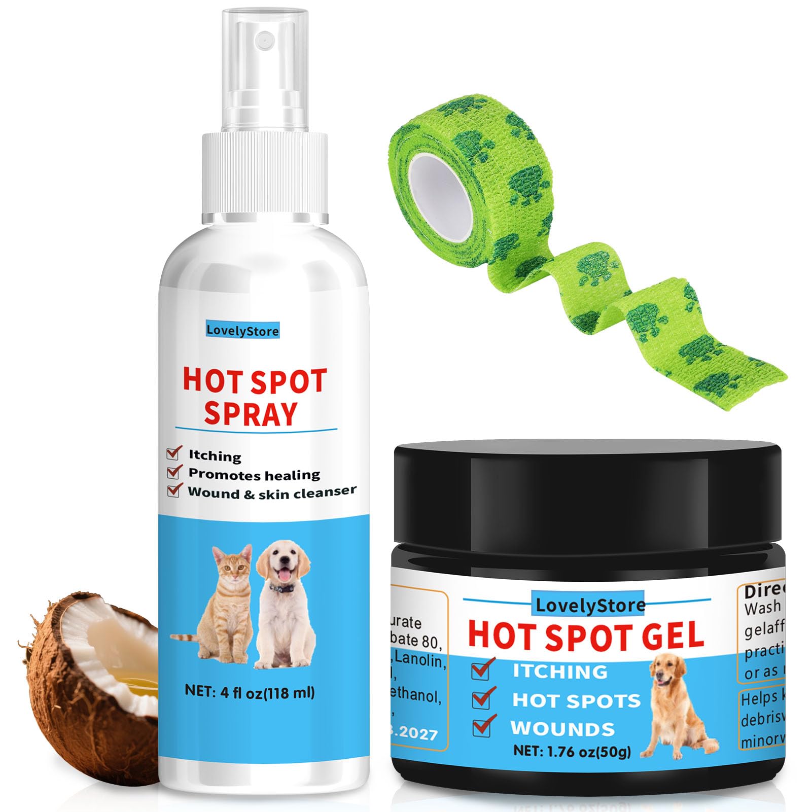 Hot Spot Treatment for Dogs and Wound Care Kit - 3 in 1 Hot Spot Spray & Gel Treatment for Dogs Cats Vet Wrap Cohesive Bandage - Hotspot Dog Wound