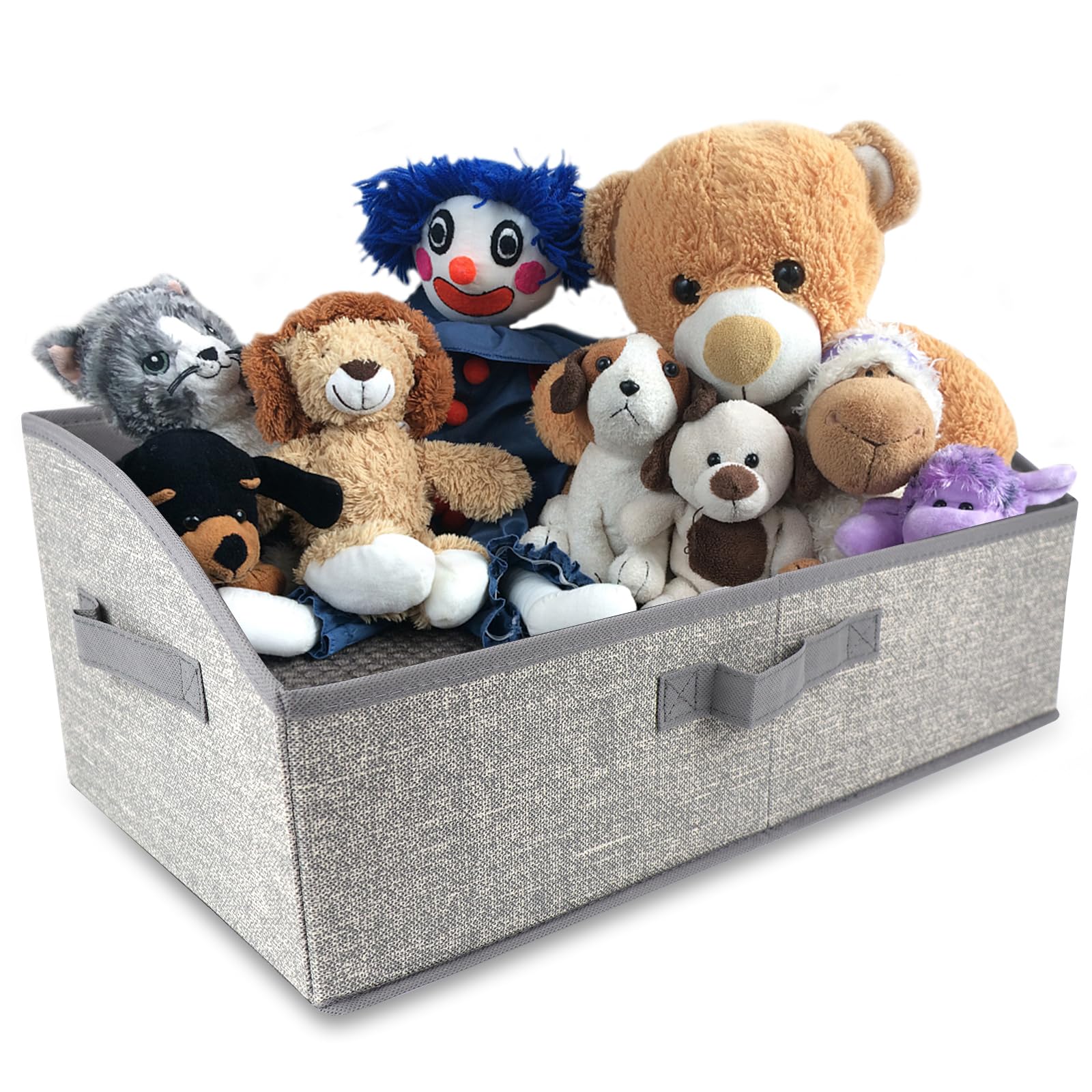 COSOWO Foldable Pet Toy Storage Box with 3 Handles, Portable Organizer Basket for Dog Toys, Blankets & Accessories, Grey