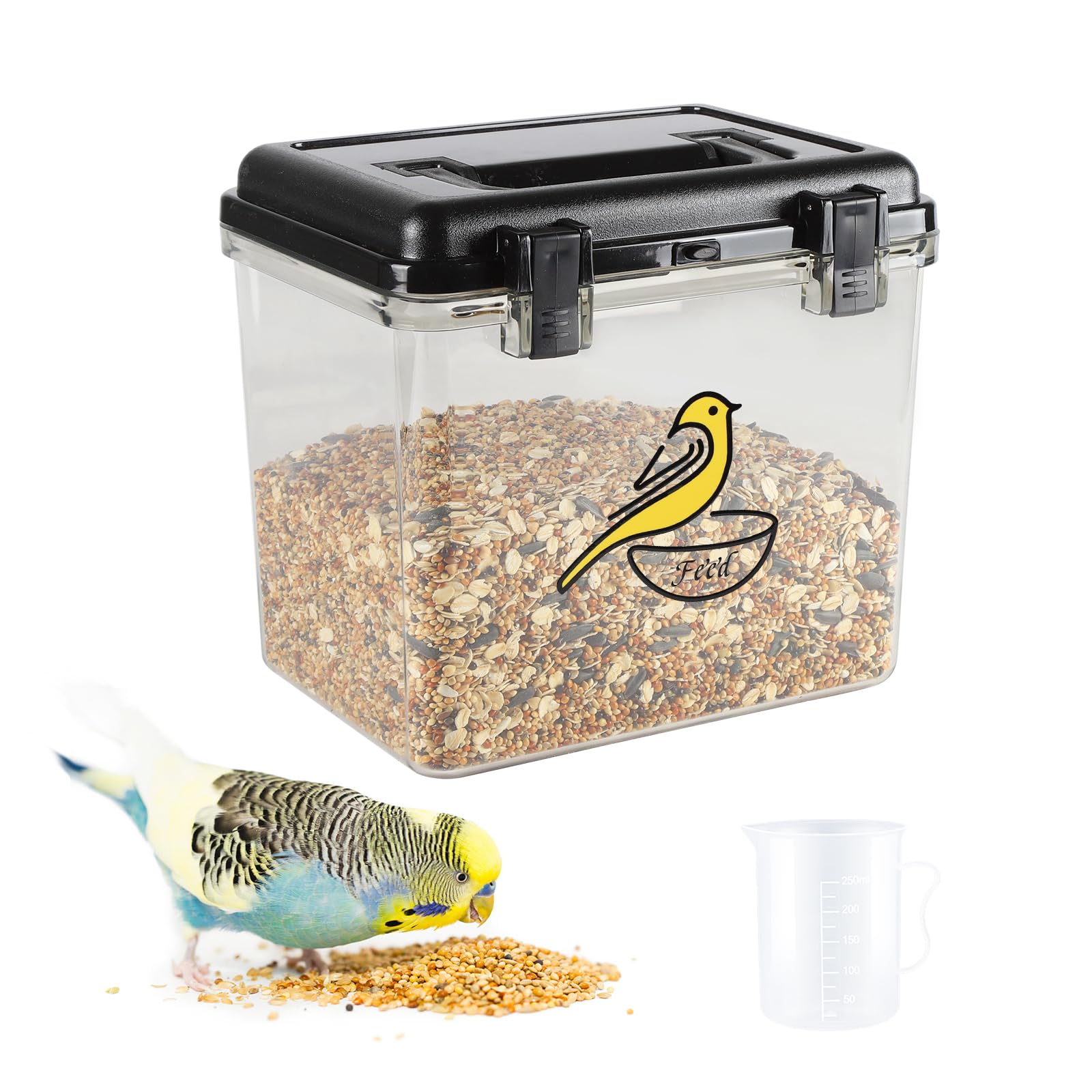 KEEP BIRD SEED FRESH AND CLEAN: bird seed storage airtight lid seals to prevent moisture and air from entering the interior. birdseed storage container Made of high quality BPA free material. songbird bird seed keeps all seeds fresh and ready to use, perfect for storing wild bird seed, sunflower see