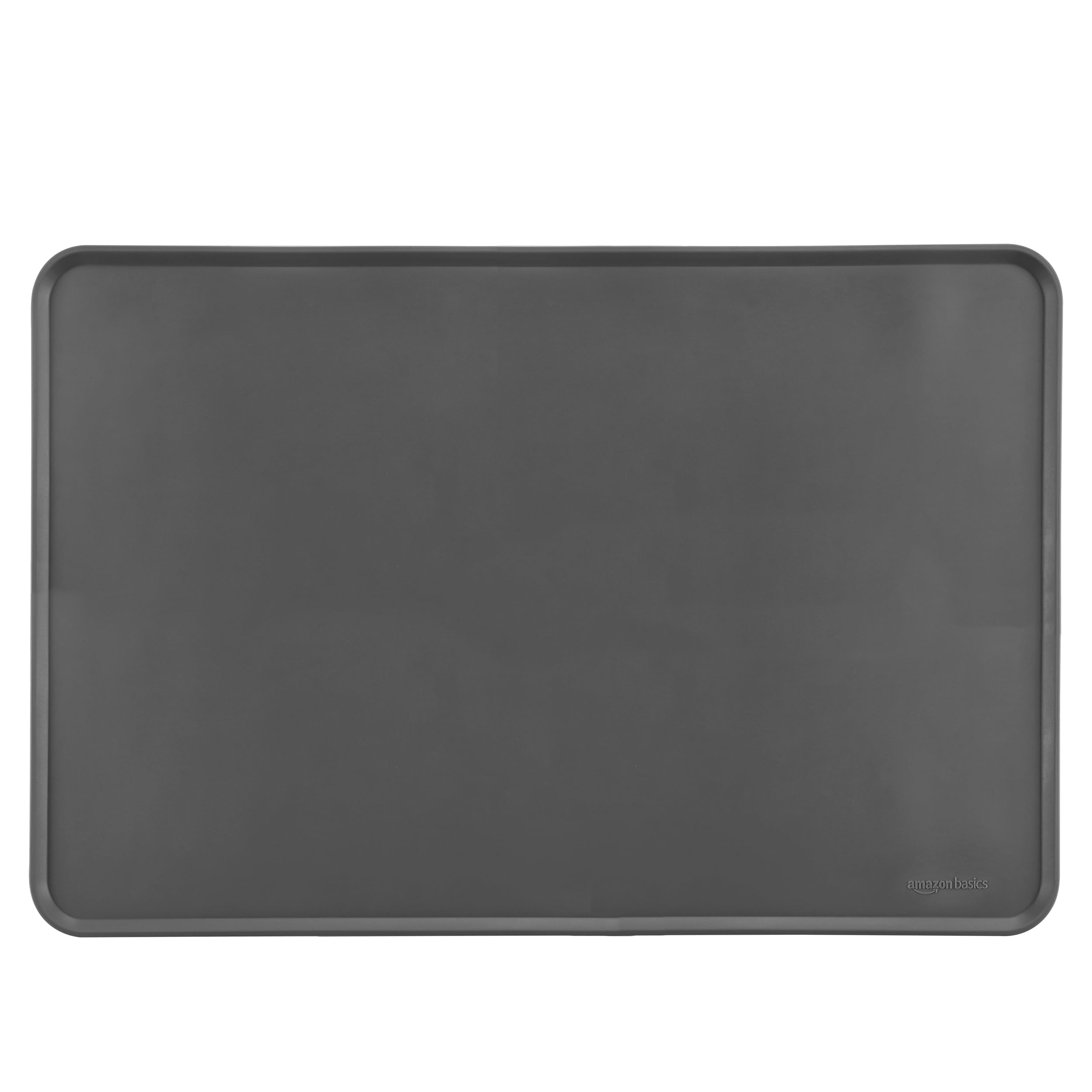 Amazon Basics Waterproof Anti-Slip Silicone Pet Food and Water Bowl Mat, 24 x 16 inches, Grey, Solid