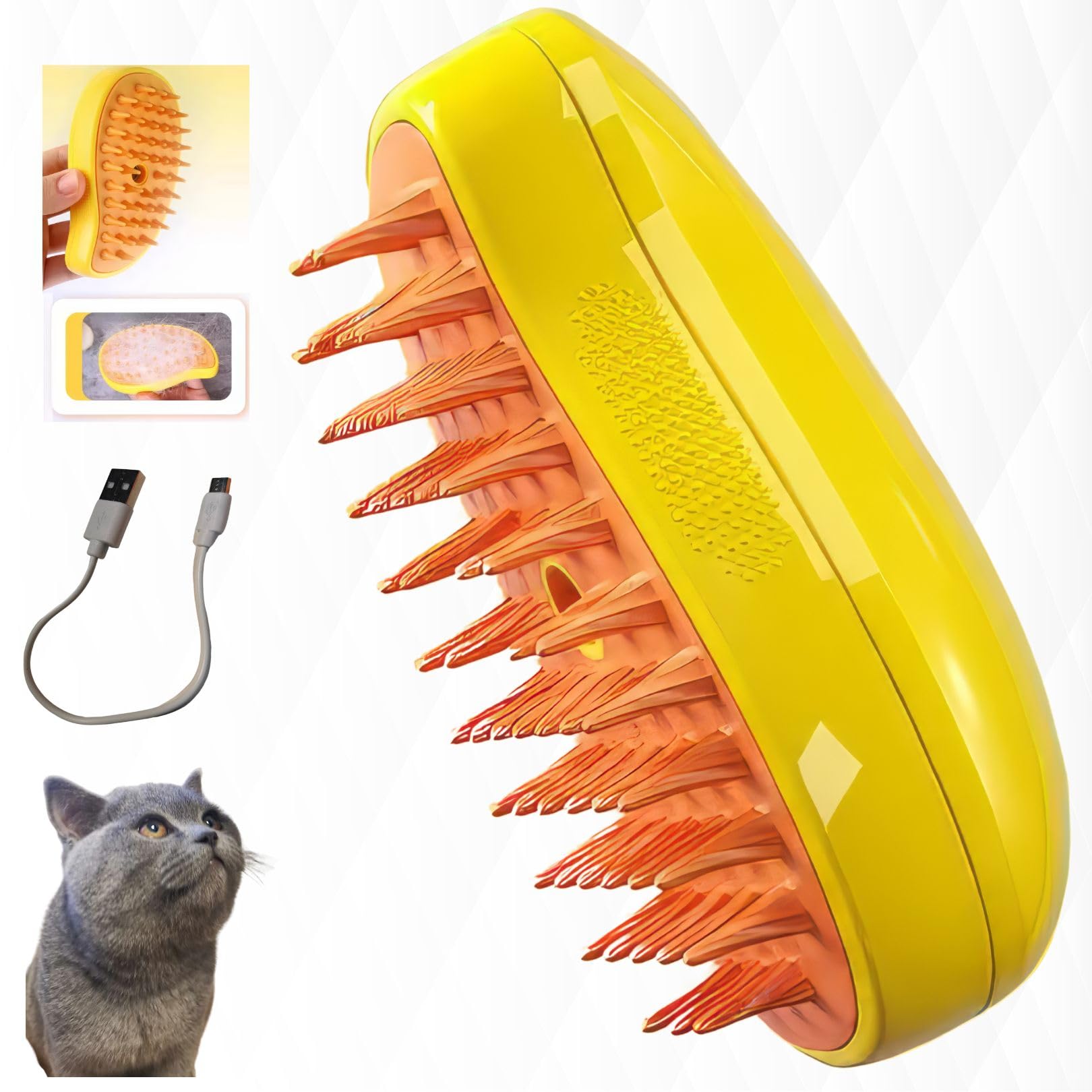 MTLSYCFT Cat Steam Brush,pet steam brush, 3 In1 Cat Grooming Tool,Cats Hair Steamer(YELLOW)