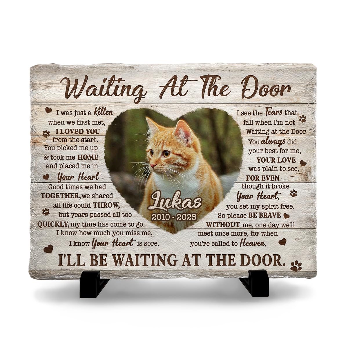 SOL VIBES Personalized Cat Memorial Stone, Waiting at The Door, Pet Loss Sympathy Gift & Cat Bereavement Gift, Customizable Photo Prints, Name, Years,