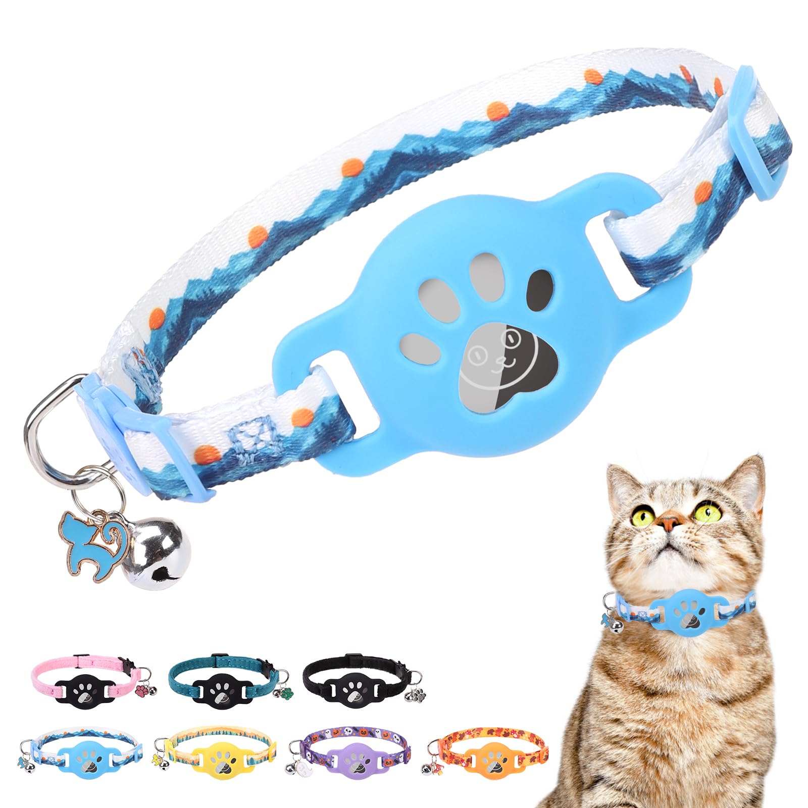 DILLYBUD Airtag Cat Collar Breakaway, Cute GPS Cat Tracker Collars with Air Tag Holder, Safety Cat Collars with Bell & Pendant for Girl Boy Cats, Blue