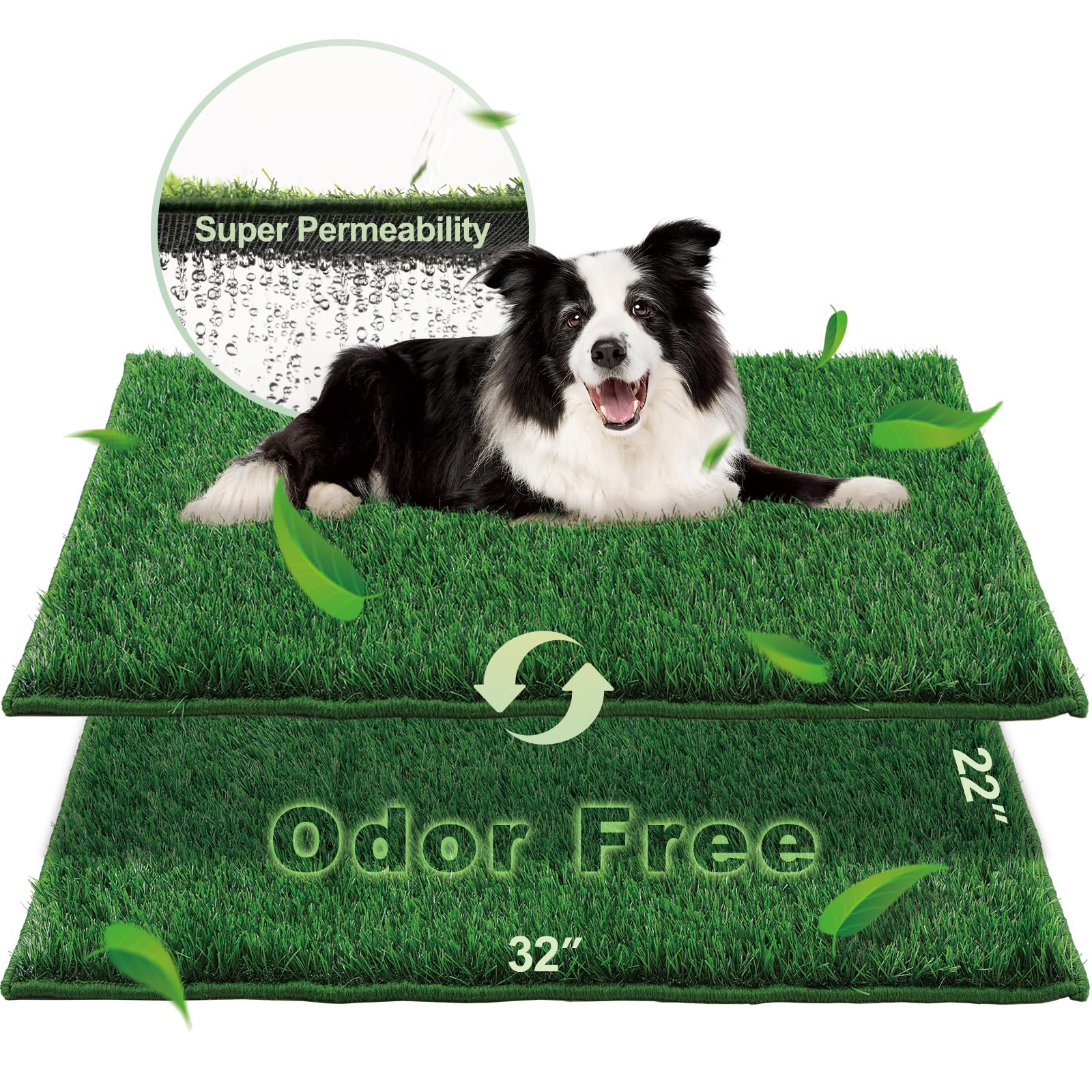 HQ4US 4LEGS Artificial Grass, Dog Pee Grass Pads for Dogs Potty, 2PCS Odor Free Fake Grass for Dogs Large 32’’×22’’ with Countless Drainage Holes, Dog