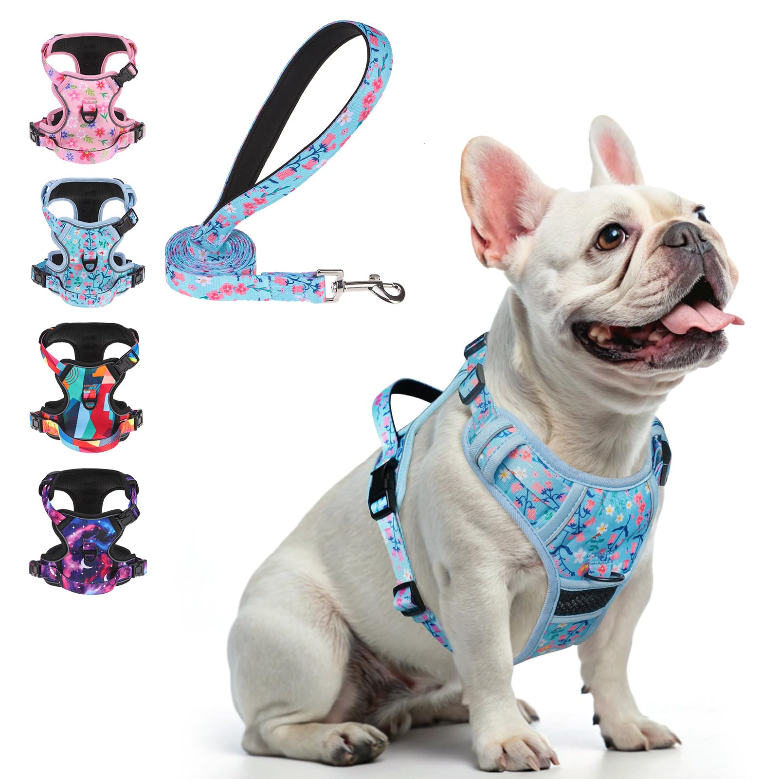BEAUTYZOO No Pull Dog Harness Small, Adjustable Dog Harness and Leash Set -Easy Wearing with 3 Buckles/Control Handle,No Choke Soft Padded Reflective