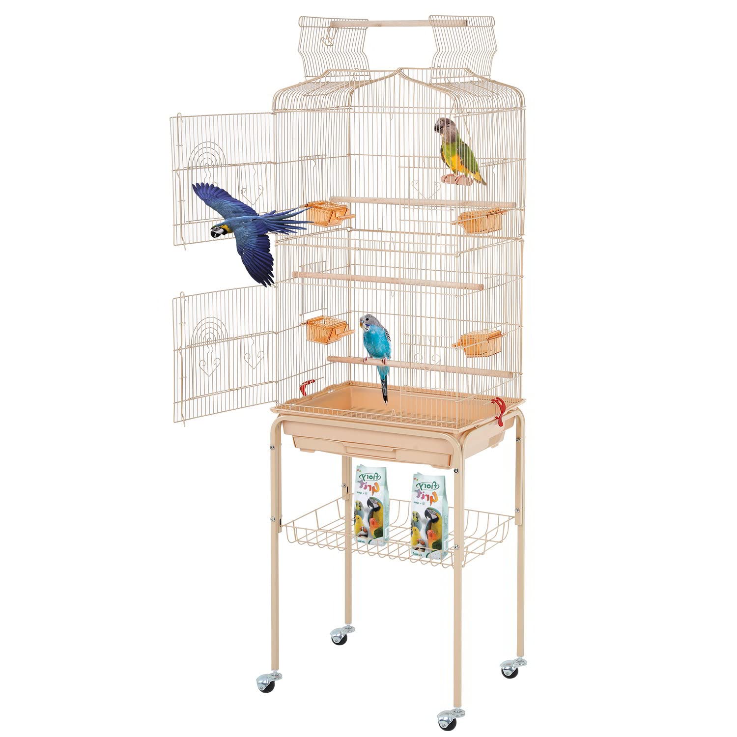 BestPet 64 inch Wrought Iron Bird Cage for Parakeets Medium Small Parrots Parakeet Cage with Detachable Rolling Stand & Play Open Top for Cockatiels