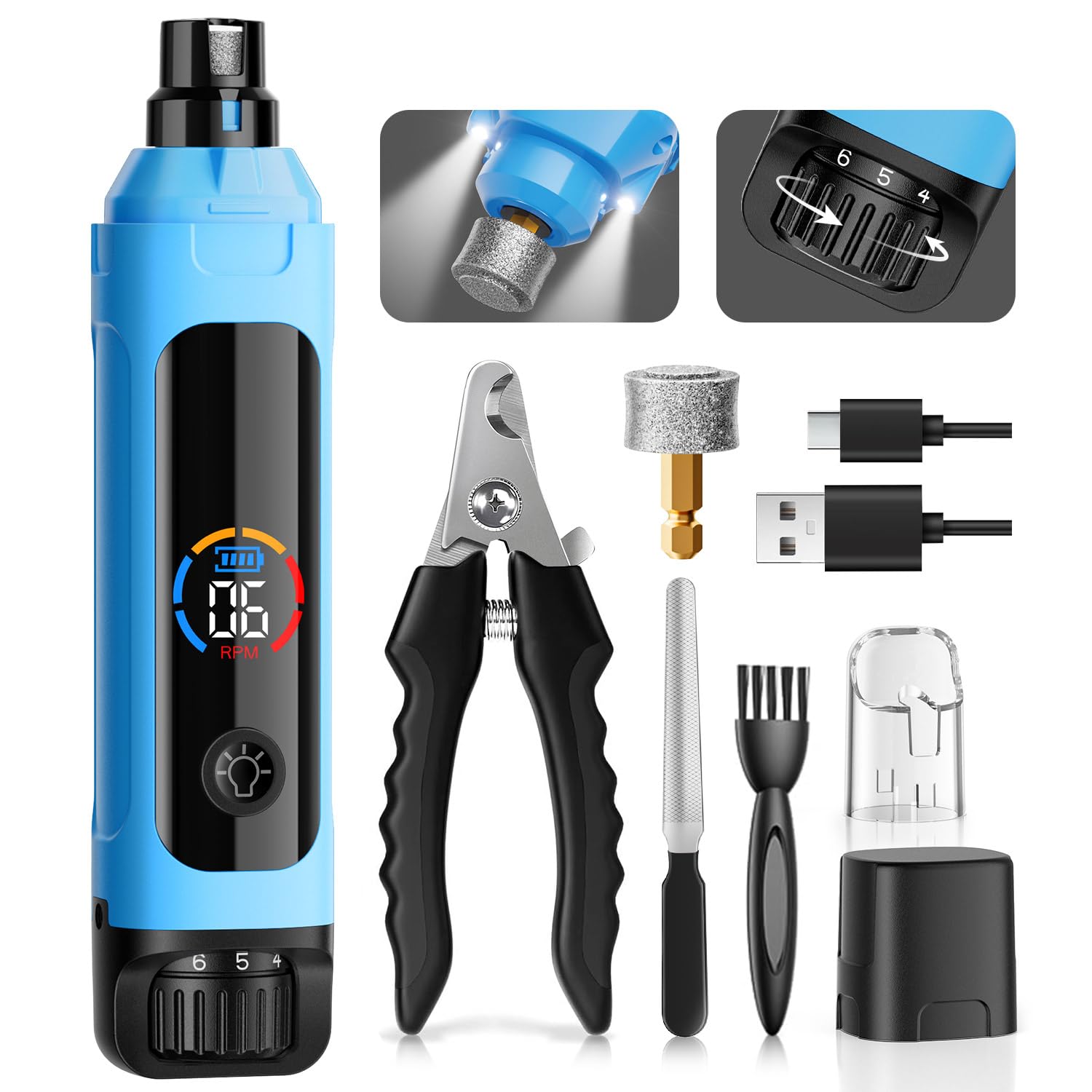 Upgrade 6 speeds & 3 Grinding Ports: Whether it's kitten claws or large dog nails, this upgrade ensures faster, smoother, and stress-free trimming. Match the precise speed and port according to your pet's needs, allowing you and your pet to enjoy a relaxing nail trimming experience. LED Display Scre