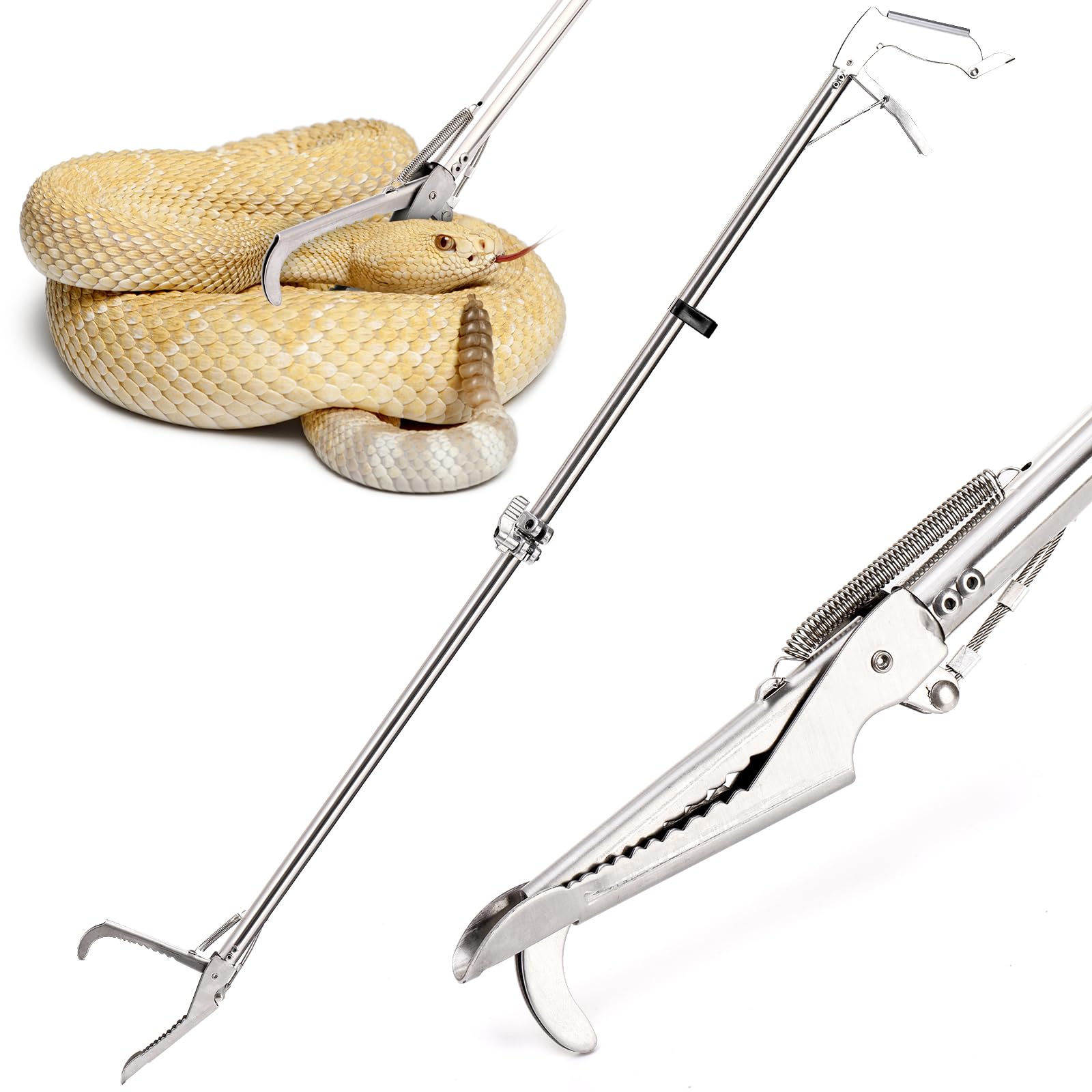 【Durable】The unfolded length is 47.2 ", and the folded length is 24.4". Our snake tong is made of firm stainless steel and built to last, ensuring years of reliable use. Its heavy-duty construction can withstand even the toughest conditions, making it suitable for both indoor and outdoor snake t