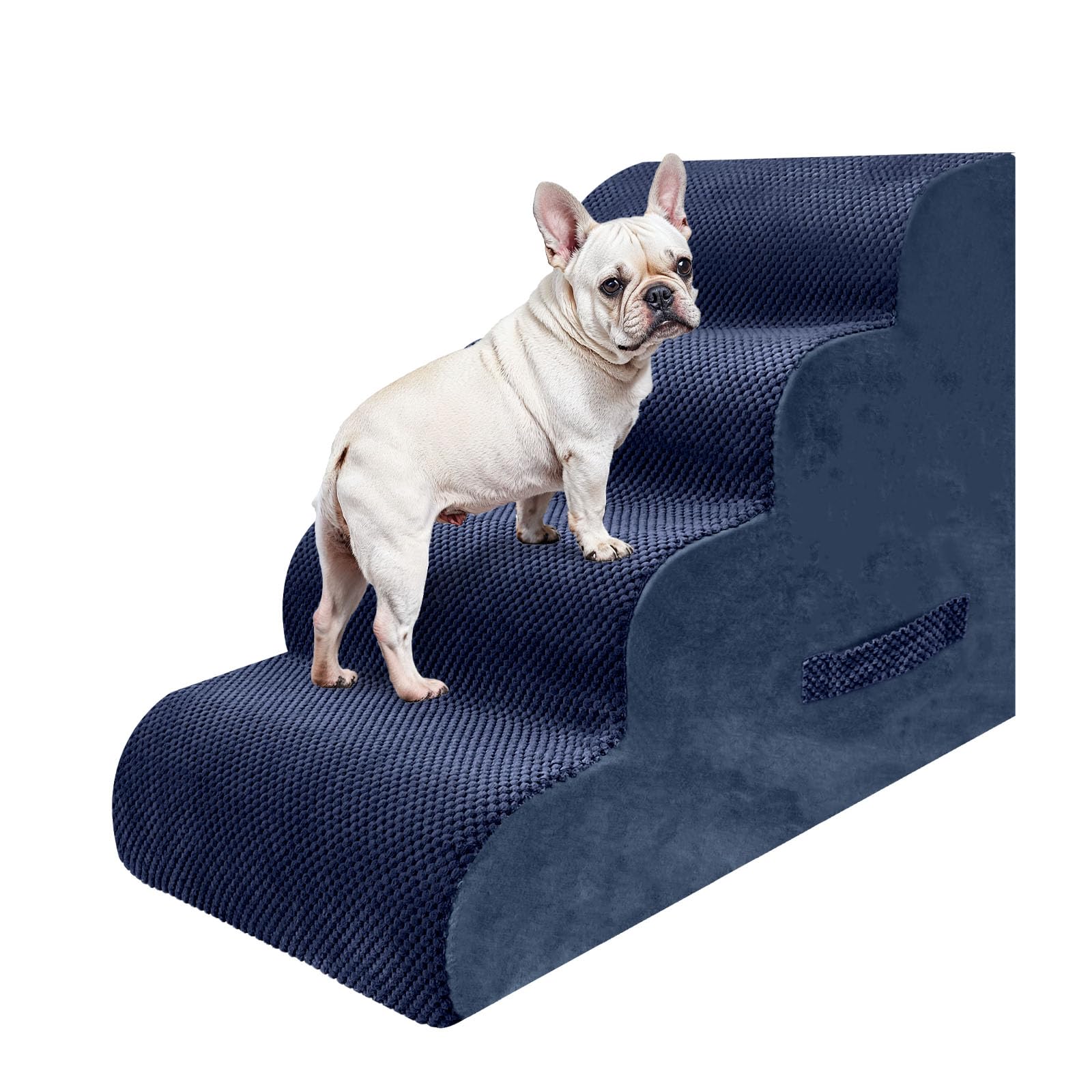 Perfect Height for Every Pup:Upgrade your pet’s comfort with the PAWSCART Dog Stairs, standing at an ideal 19.6" height to easily reach beds, couches, and other elevated spots. This thoughtful design ensures a gentler slope compared to ordinary Dog Ramp options, making it safe and easy for pets