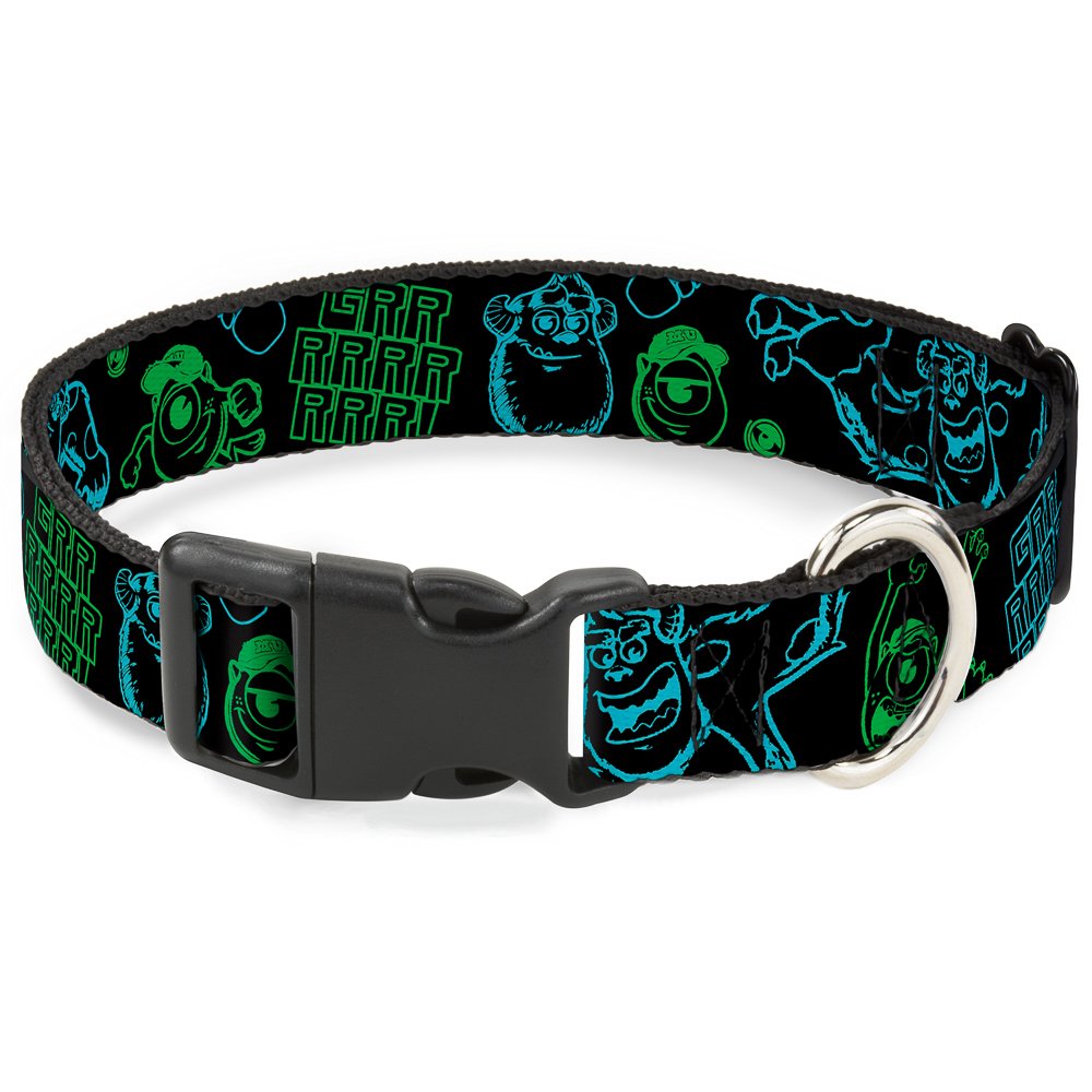 Buckle-Down Monsters Inc. Sully & Mike Poses/Grrrrr! Black/Turquoise/Green Plastic Clip Collar, Large/15-26"