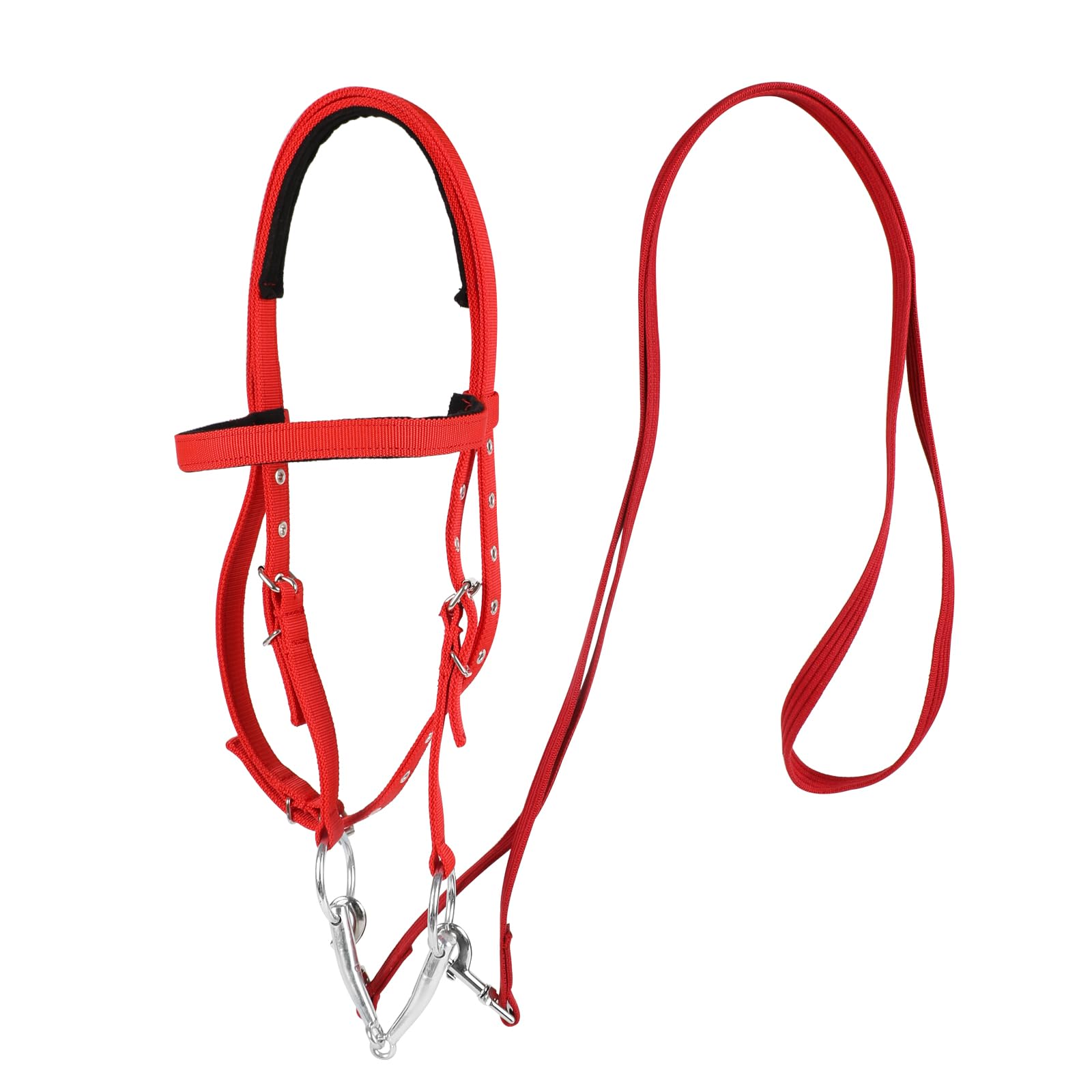 NIUTRIP Adjustable Horse Bridle with Stainless Steel Bit - Equestrian Bridles and Horse Headstall (Red, L)