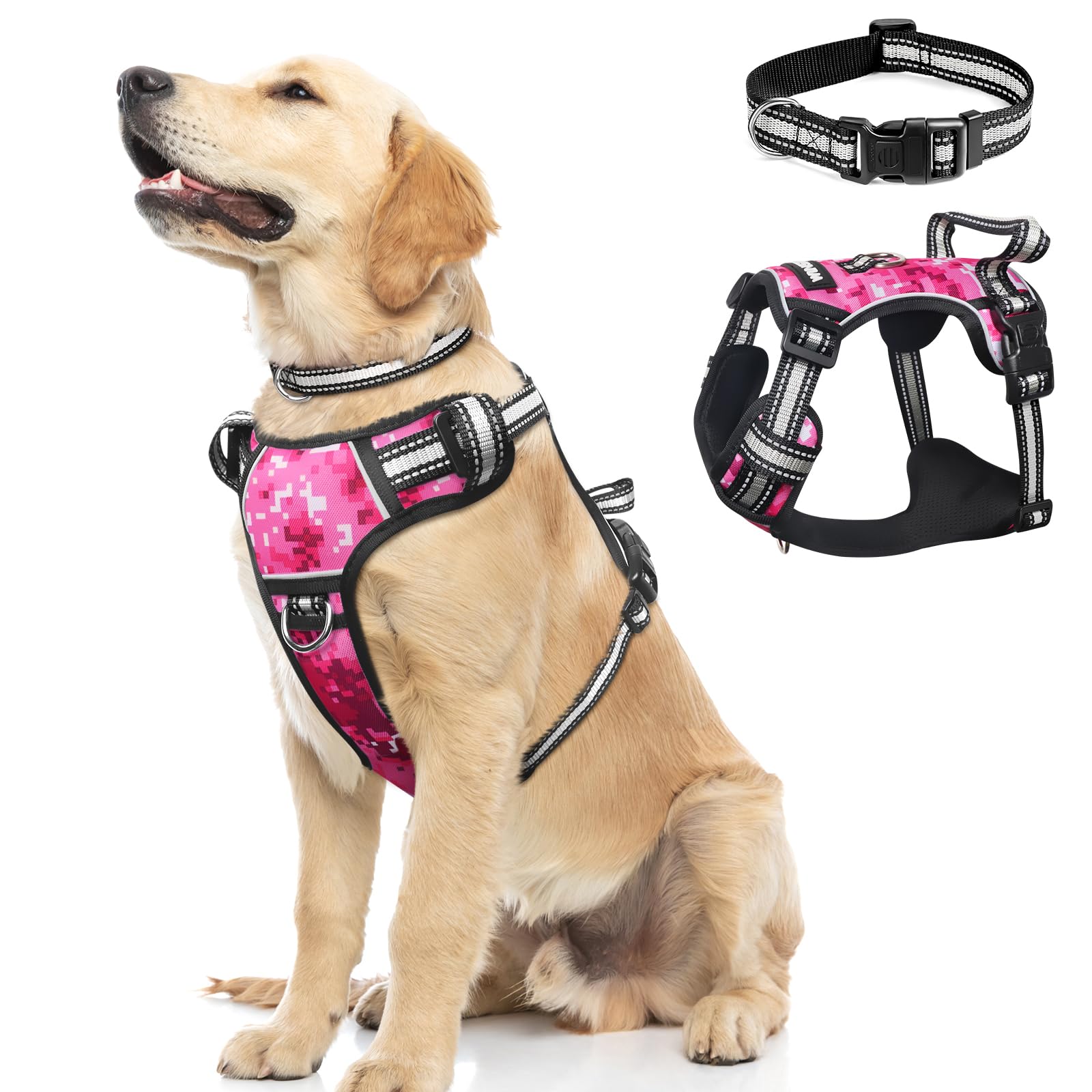 WINSEE Dog Harness No Pull, Pet Harnesses with Dog Collar, Adjustable Reflective Oxford Outdoor Vest, Front/Back Leash Clips for Small, Medium, Large,
