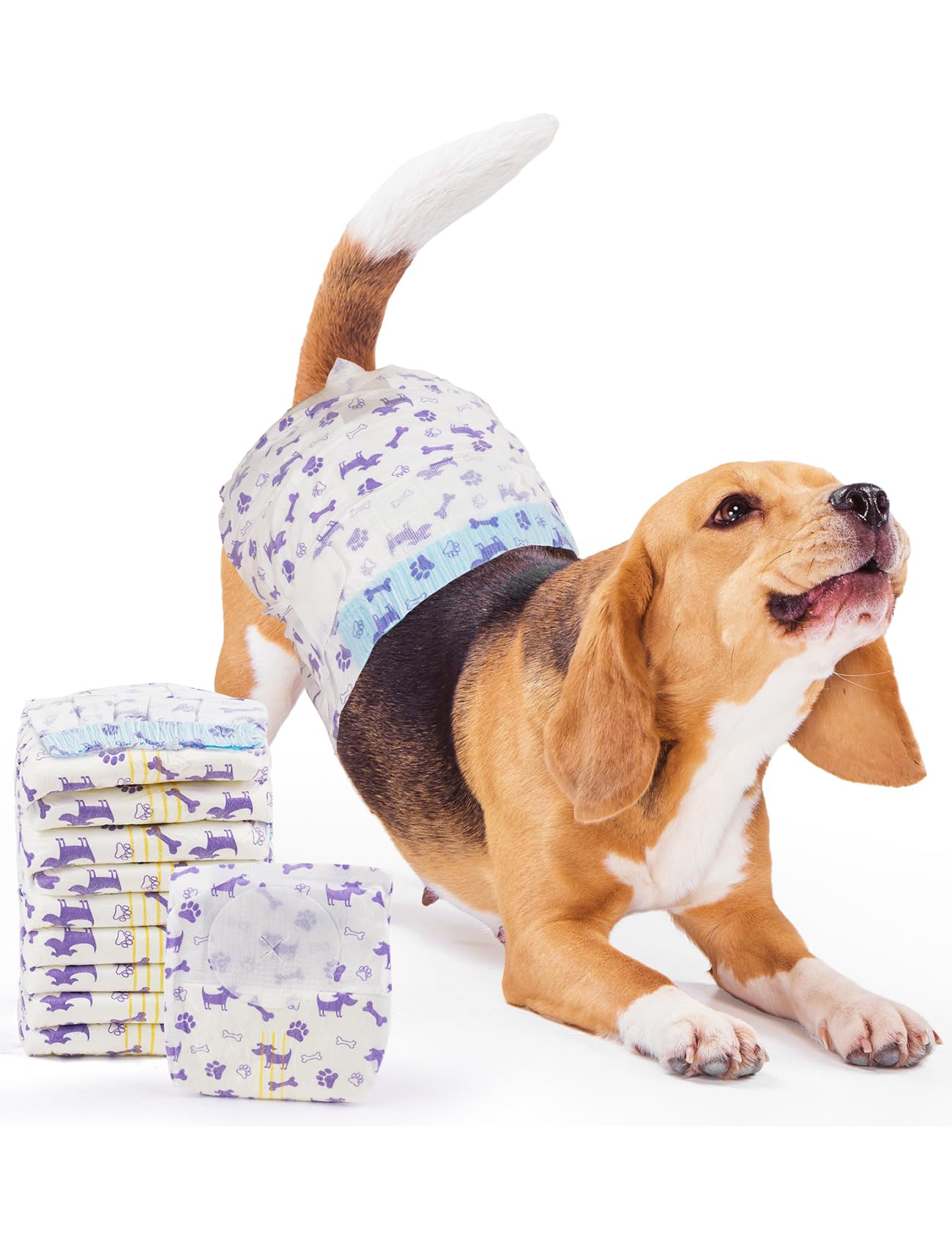 MICOOYO Disposable Dog Diapers Female, Doggie Diapers for Dogs Female, Super Absorbent Pet Diaper with Foam Tail Hole for Heat, Comfortable Puppy
