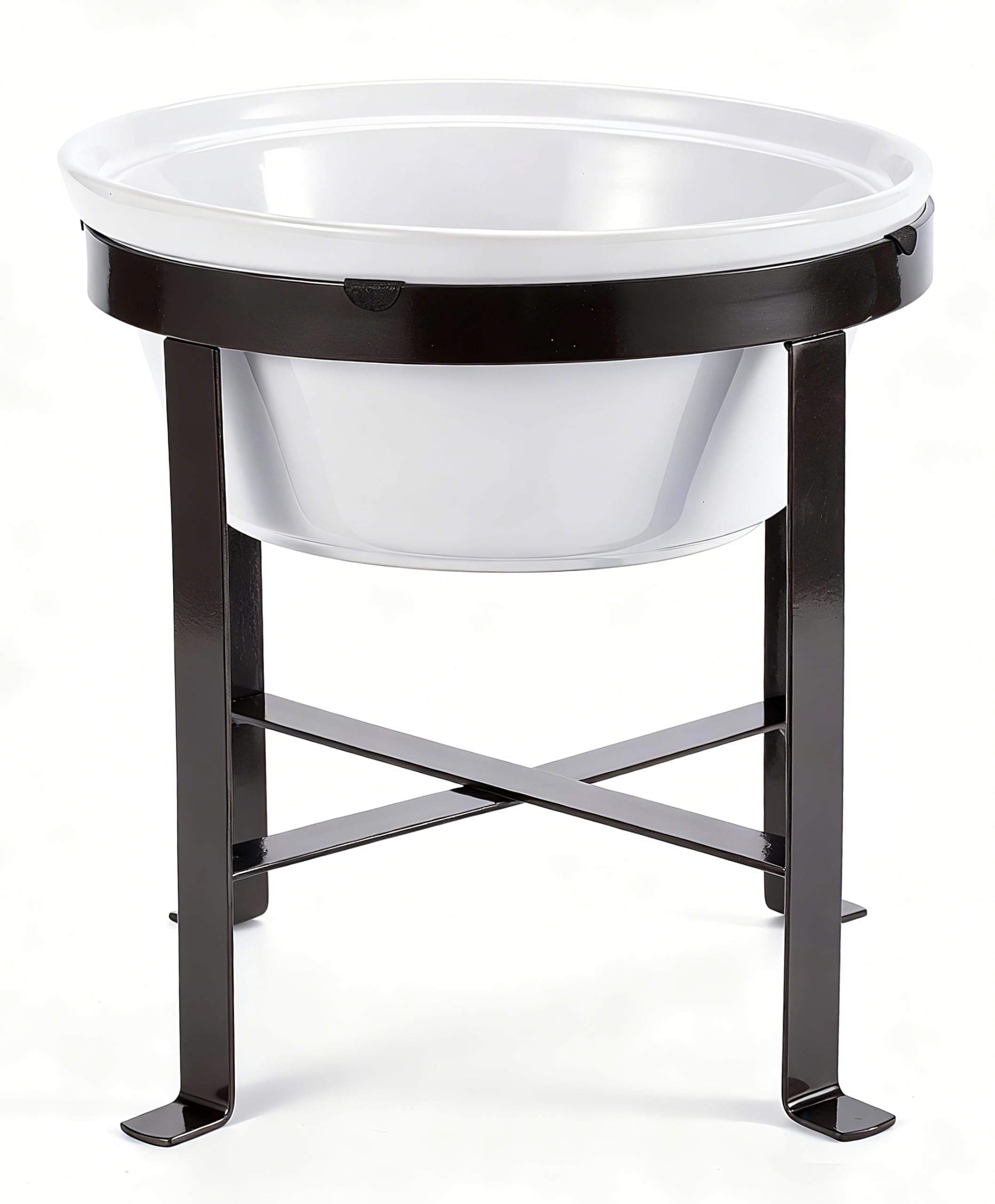 This elevated pet stand is handcrafted of wrought iron with a neutral antique powder-coated finish. The premium glazed stoneware bowls are durable, non-absorbent, dishwasher and microwave safe. Each piece is finished by hand. This raised pet feeder promotes a healthy eating posture and wellness of y