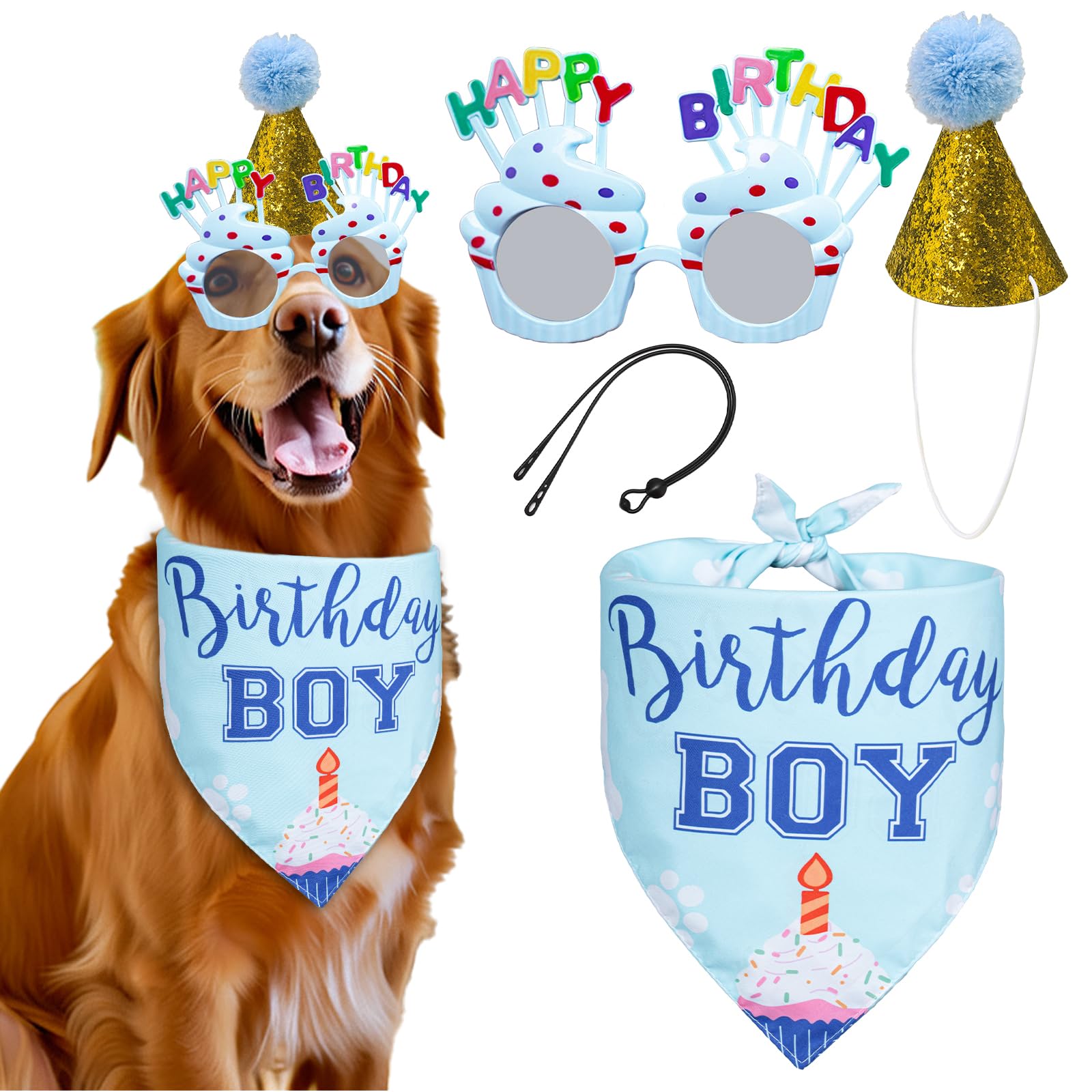 Wodison Dog Birthday Party Supplies Set - Happy Birthday Bandana, Pet Party Hat, Dog Birthday Glasses with Fixed Rope - Complete Decorations for Your