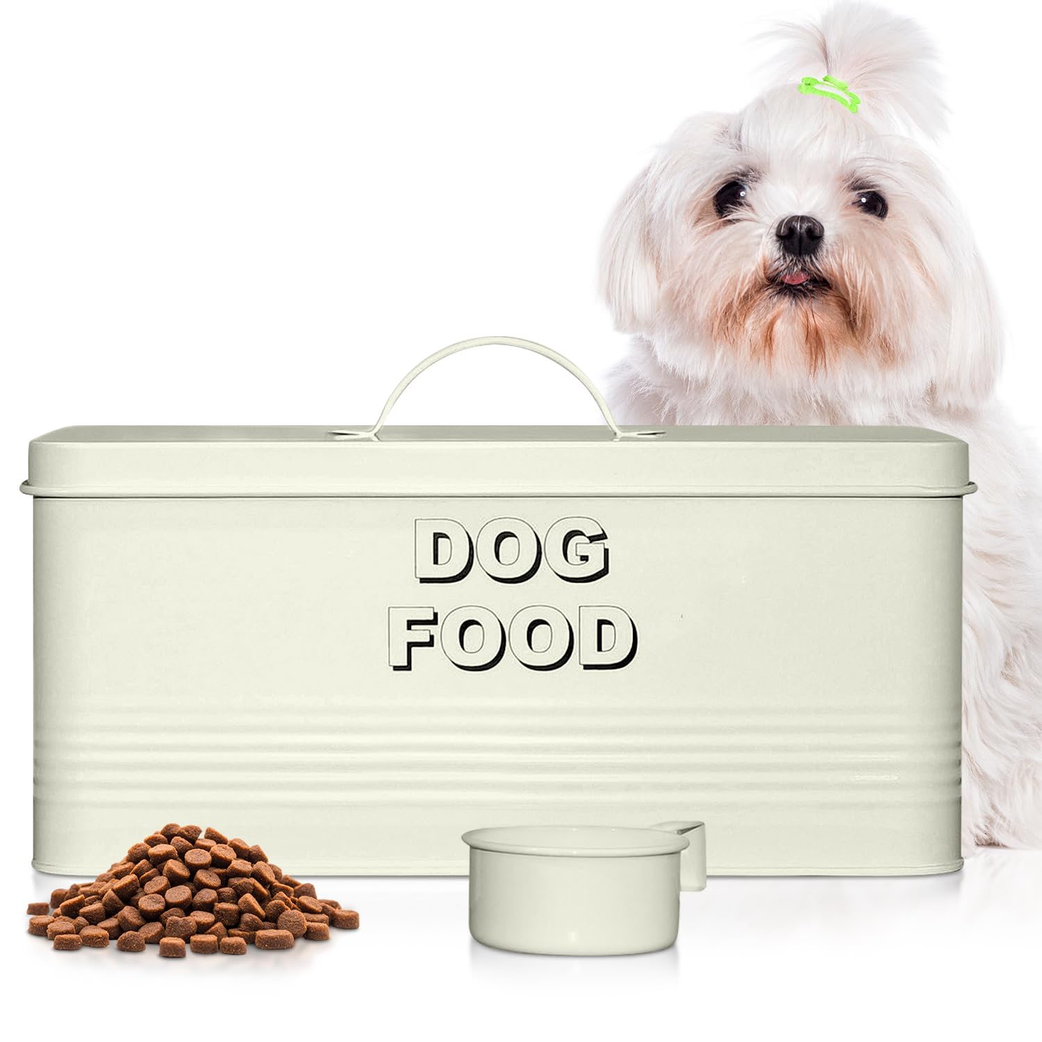 Plexon Dog Food Storage Container with Scoop, Metal Dog Food Container 10 lbs Holder Bin with Lid Small Pet Chow Storage Canister Tin, Treat Jars for