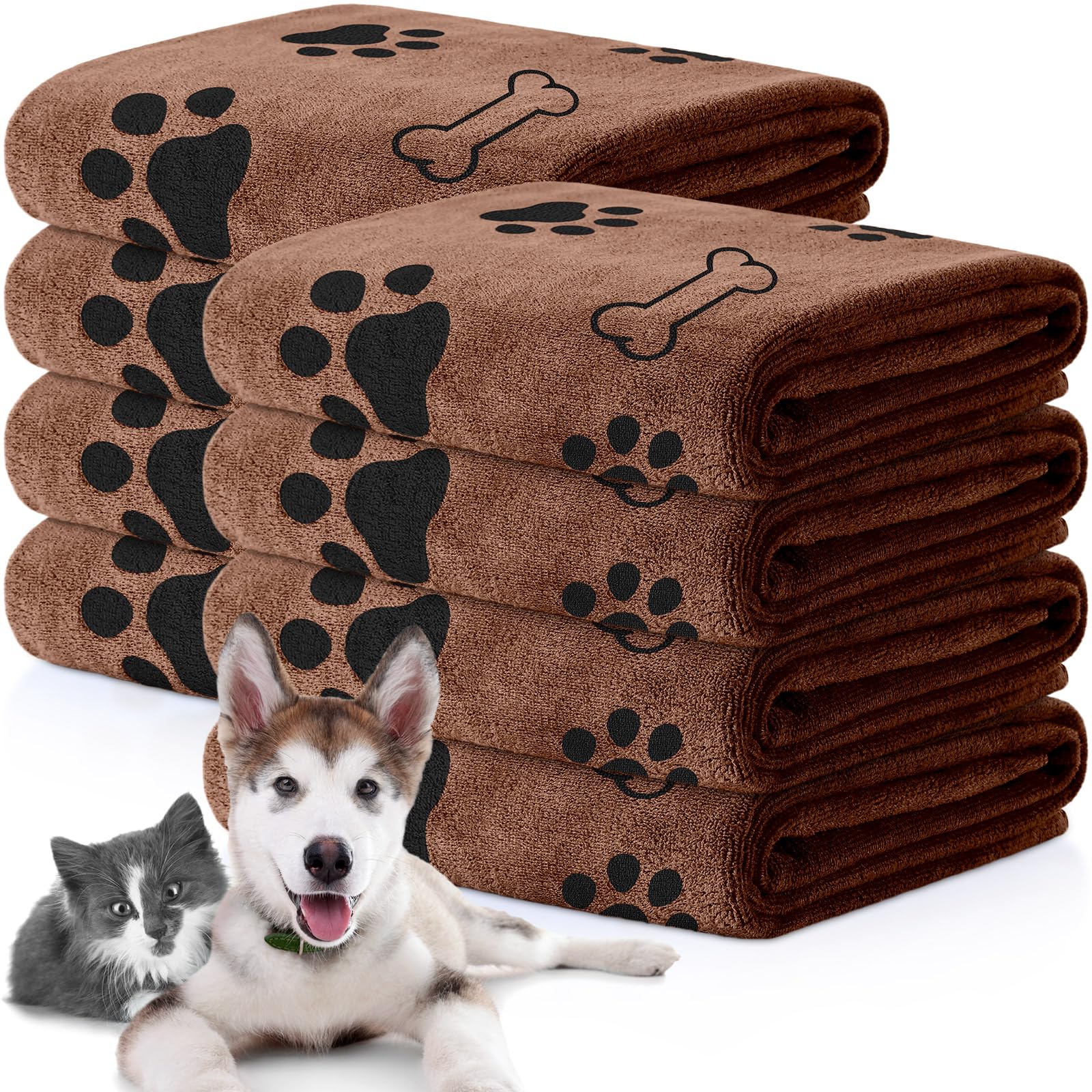 Package Quantity: the package comes with 8 pieces of pet towels for dogs in brown and gray, which are easy to use and replace, measuring approx. 40 x 24 inches/ 100 x 60 cm, suitable for medium and small pets; The bath towel with classic footprints and bone prints are designed for pets, for personal