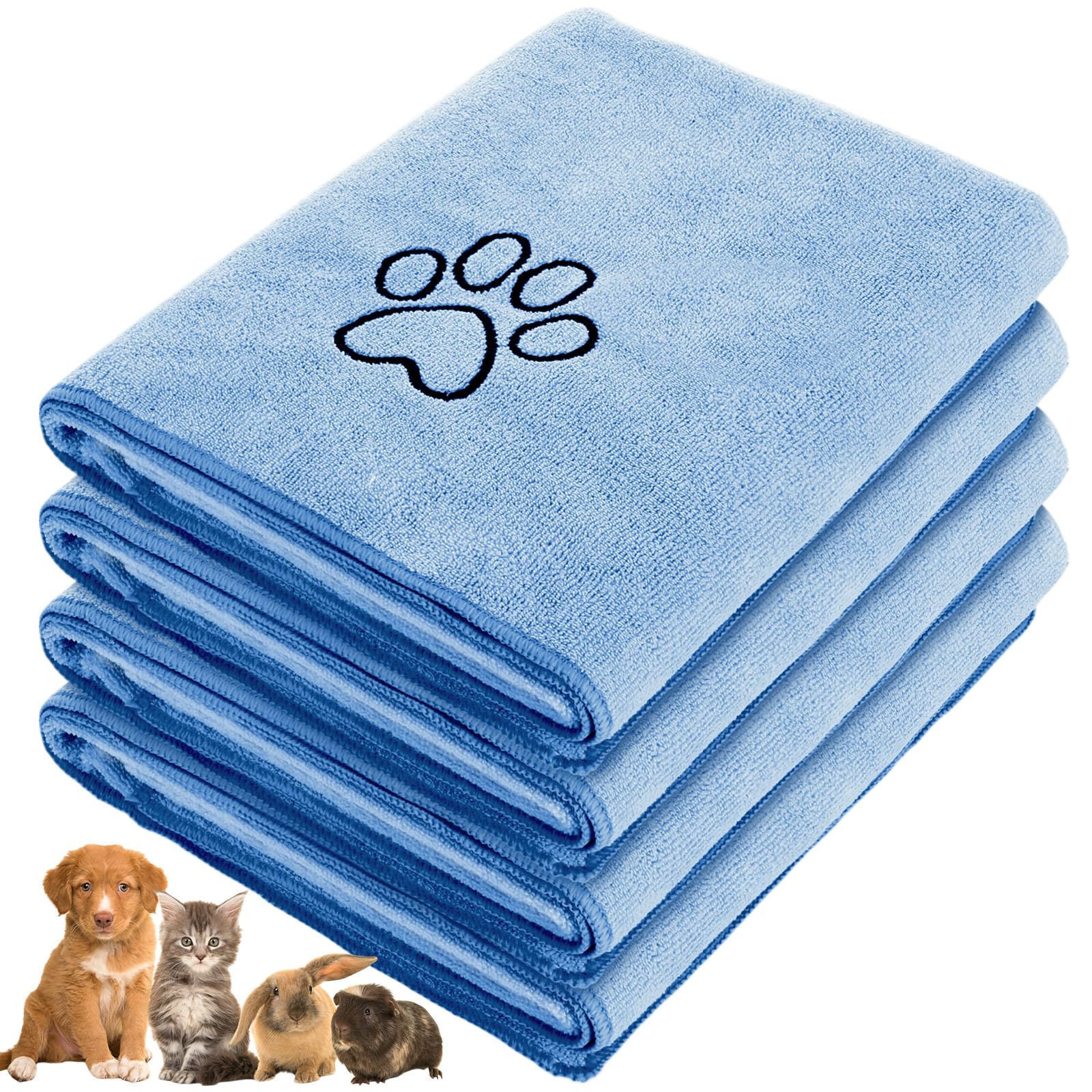 Chumia 4 Pack Dog Towels for Drying Large Microfiber Grooming Tools Absorbent Soft Bath Supplies with Embroidered Paw for Small Medium Pet Products(16