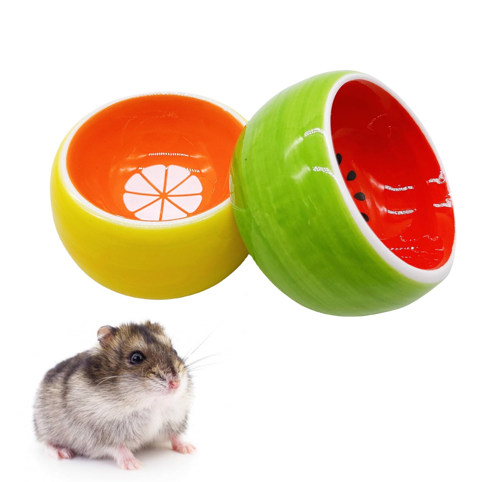 [Color fruit Hamster Bowl] cute design can arouse interest in pet feeding water, simple appearance, not only can decorate the pet's home, increase pet appetite. Ceramic bowl smooth surface, will not hurt your pet tongue chin, is an ideal pet supplies. The Hamster Ceramic Bowl is made of good ceramic