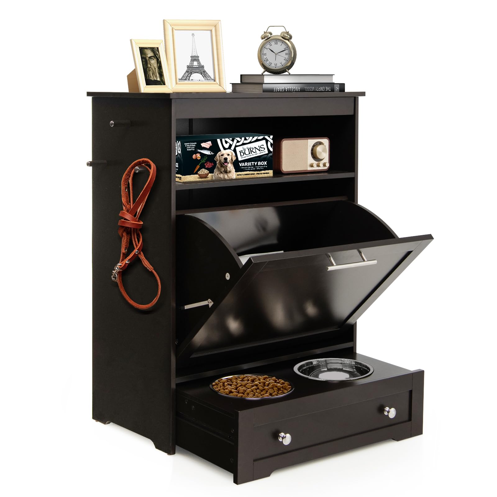 🐶【Keep Pet Supplies in One Spot】Organize pet stuff in one accessible place with this pet feeding station, it is all-in-one with 2 elevated pet bowls, a tilt-out dog food storage cabinet to keep dog’s dry food fresh; an open compartment to store wet dog food; a wide countertop to put pet toy