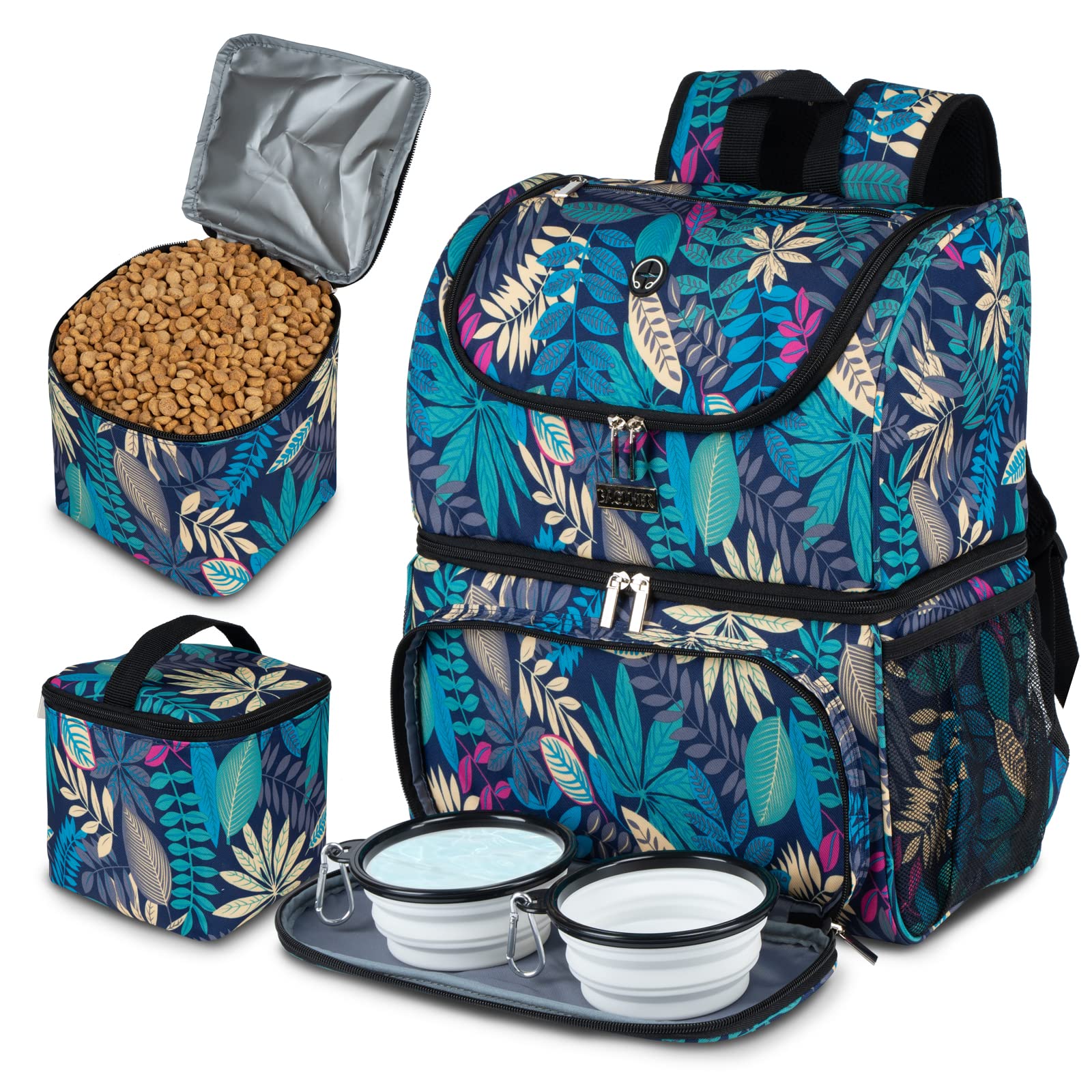 BAGLHER Pet Travel Bag, Double-Layer Pet Supplies Backpack (for All Pet Travel Supplies), Pet Travel Backpack with 2 Silicone Collapsible Bowls and 2
