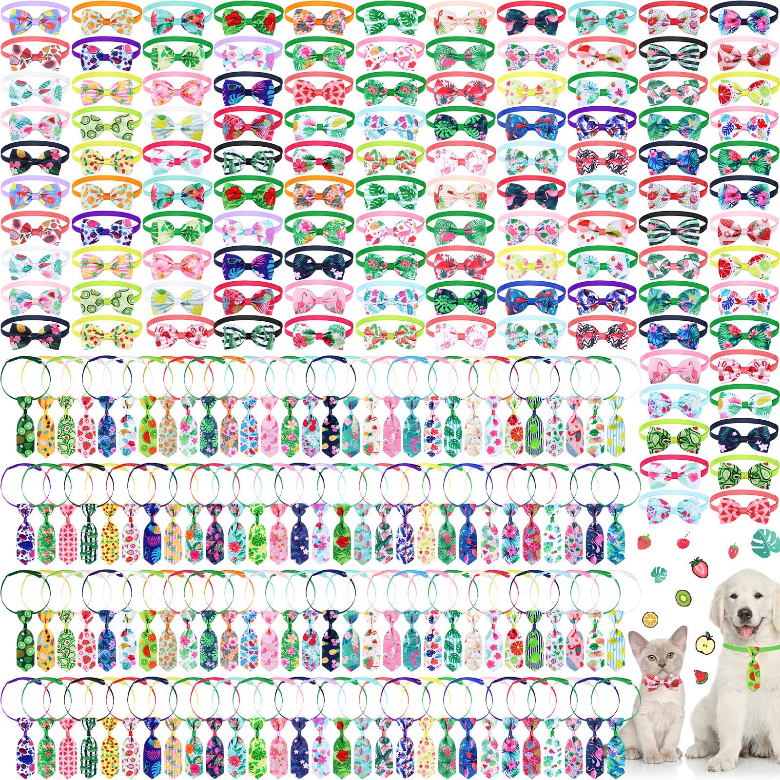Sadnyy 240 Pcs Dog Bow Ties in Bulk Include 120 Dog Neckties and 120 Bow Tie Summer Spring Dog Bow Ties Collars Bulk for Dogs Adjustable Hawaiian