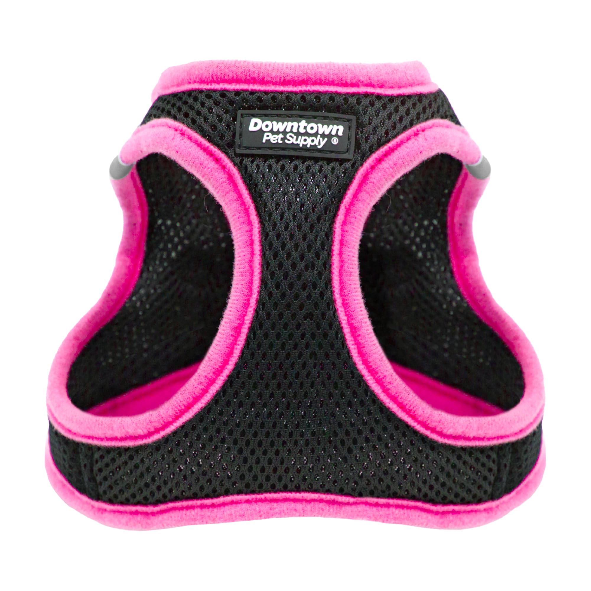 Downtown Pet Supply Step in Dog Harness for Small Dogs No Pull, Large, Black w/Pink Trim - Adjustable Harness with Padded Mesh Fabric and Reflective