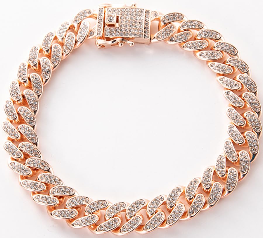Bling Bling: This luxurious dog collar features a dazzling Cuban link design encrusted with sparkling diamond-like crystals for a glamorous look. Premium Quality: Crafted with high-quality metal alloy and rhinestone embellishments for long-lasting durability and shine. Adjustable Fit: The 13mm wide