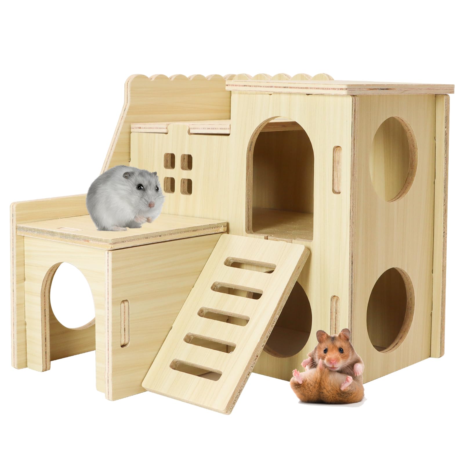 【Reliable Material】The hamster wooden house is made of high quality wood and non-toxic paint with strong wood aroma, fully considering their comfort and safety. Create a comfortable and safe living space for your hamster! 【Convenient and Practical Design】The small hamster wooden house adopts