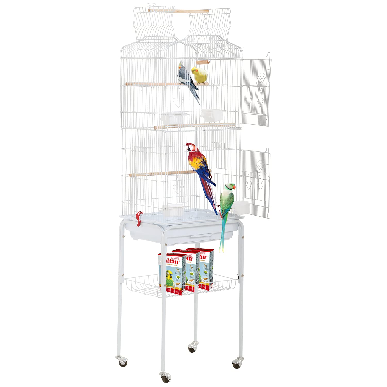 Bird Cage Parakeet Cage 64 inch Open Top Standing Parrot Cage Accessories with Rolling Stand for Medium Small Cockatiel Canary Parakeet Conure Finches