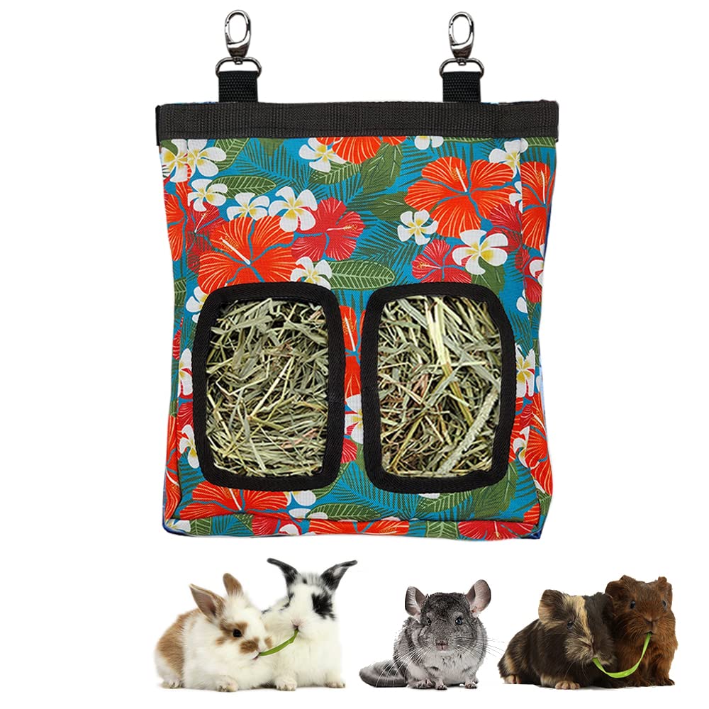 Guinea Pig Hay Feeder, Hanging Rabbit Hay Feeder Bag for Guinea Pigs Bunnies Chinchillas. Big Flowers