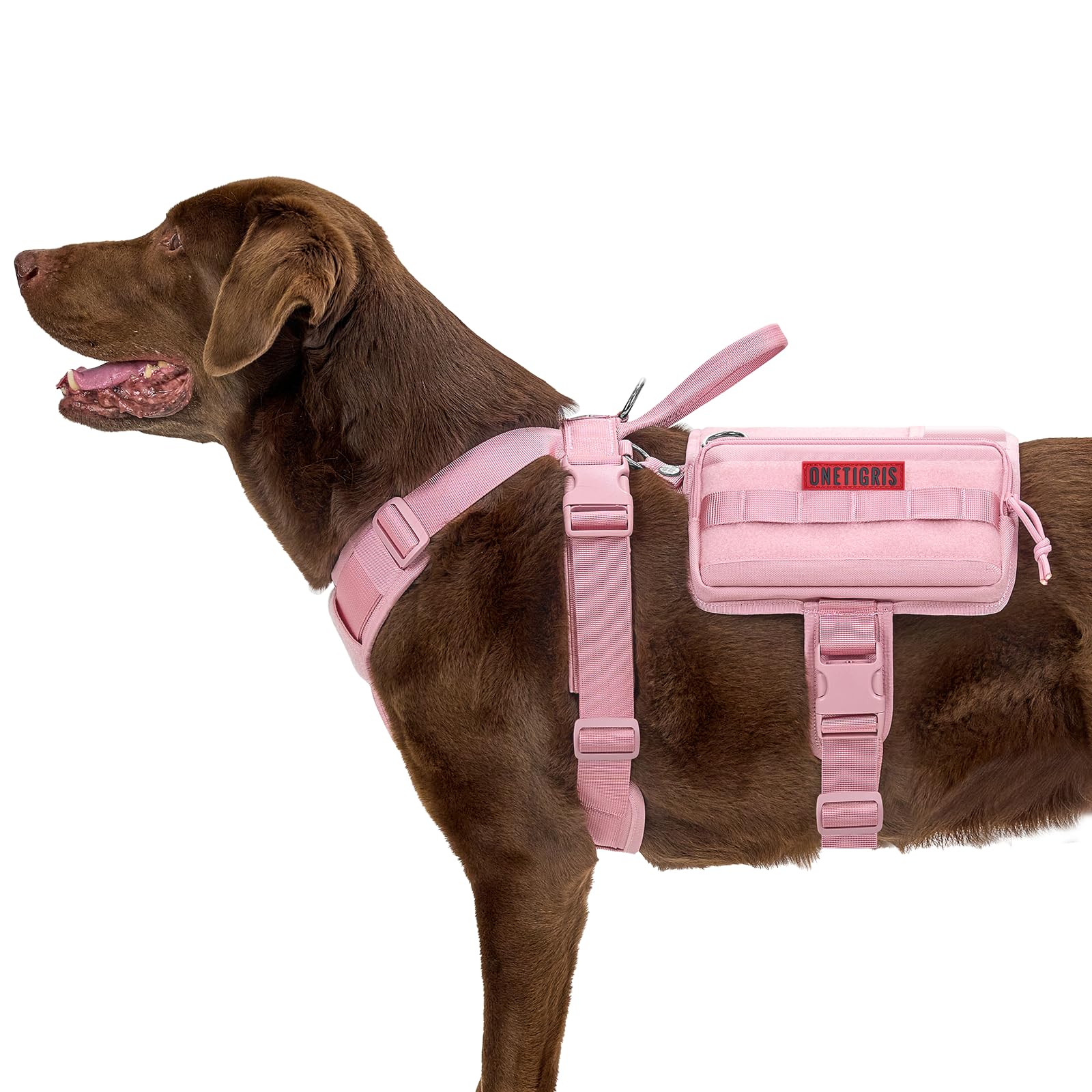 OneTigris Service Dog Vest Harness, Service Dog Cape Guardian Dog Backpack Harness with Pouches Dog Saddle Bag for Small Medium and Large Dogs (Pink,