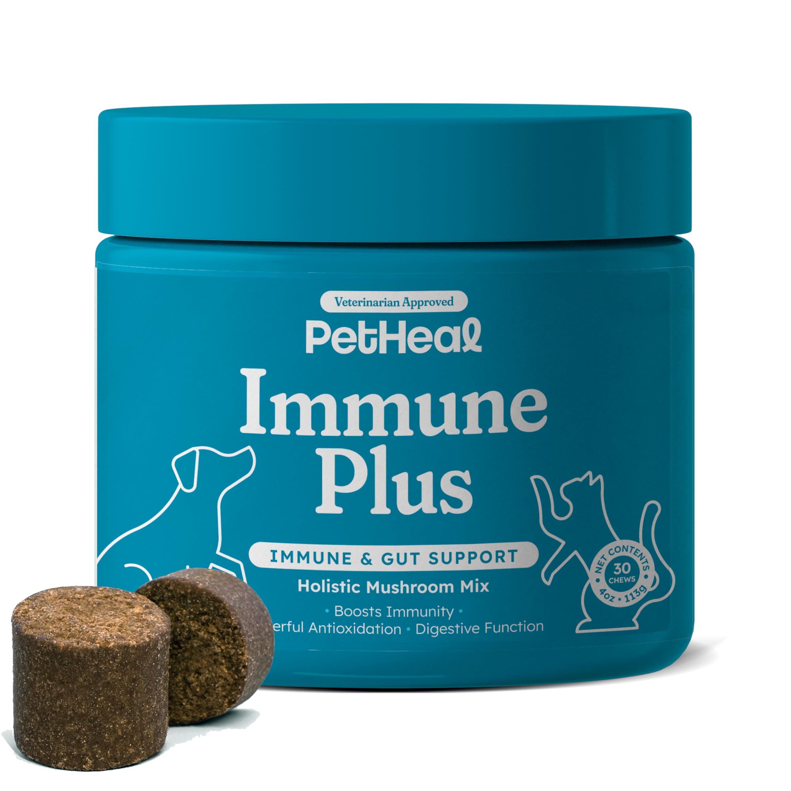 PetHeal Immune Plus Chews for Dogs - Vet-Reviewed - Supports Immunity, Energy & Liver Health with Turkey Tail, Reishi & Milk Thistle | Reduces Lumps &