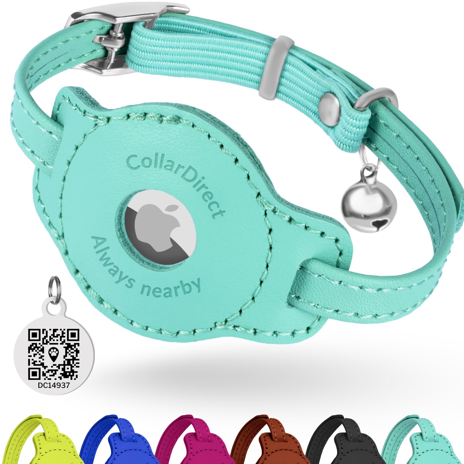 CollarDirect Airtag Cat Colar with QR Tag and Bell - Leather Cat Collar with Airtag Holder and Elastic Strap for Kittens, Small Large Cats - Collar
