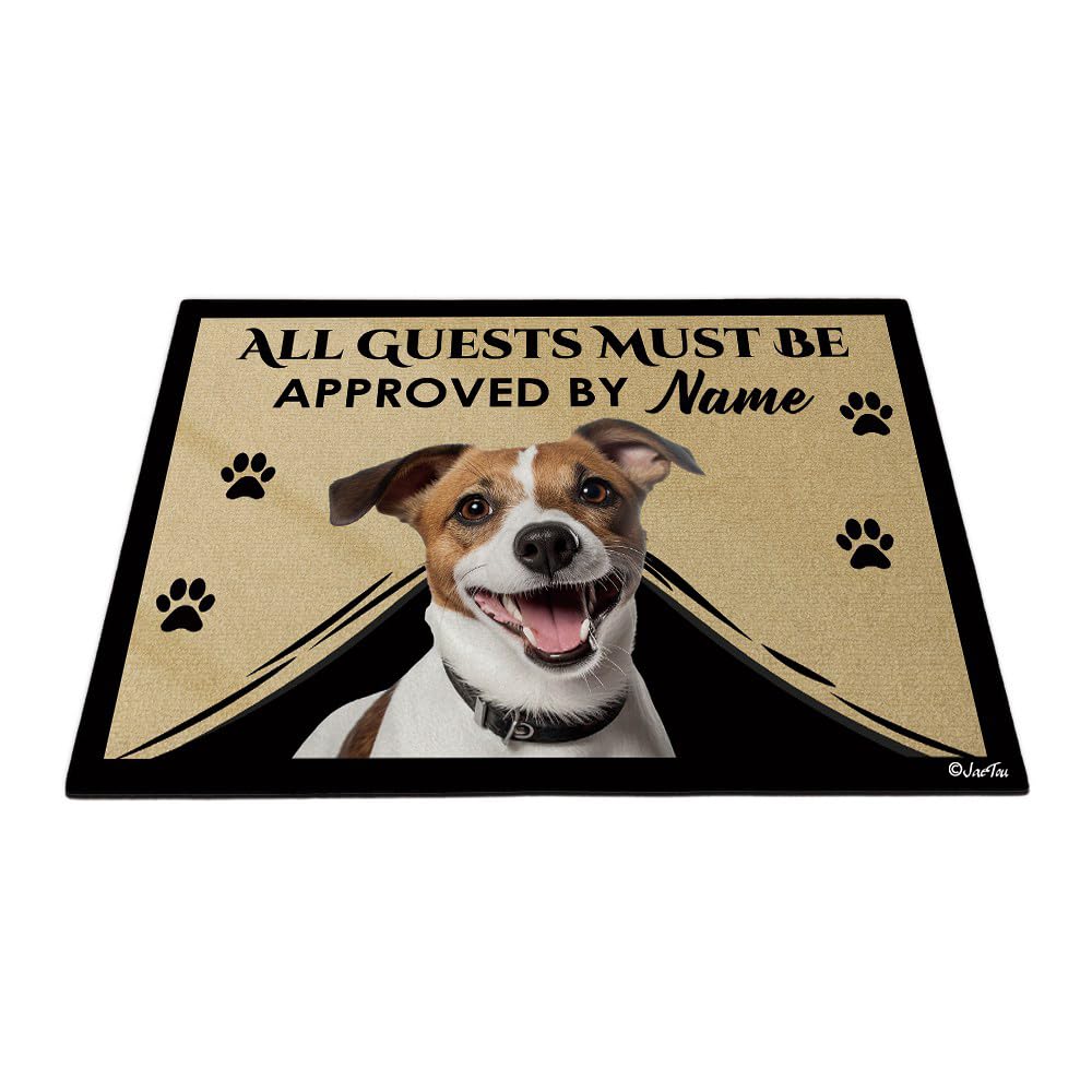 JaeTou All Guests Must Be Approved Welcome Doormat Jack Russell Terrier Dog Decor Funny Customized Floor Rug for Dog Lover, 27.5x17.7 Inches