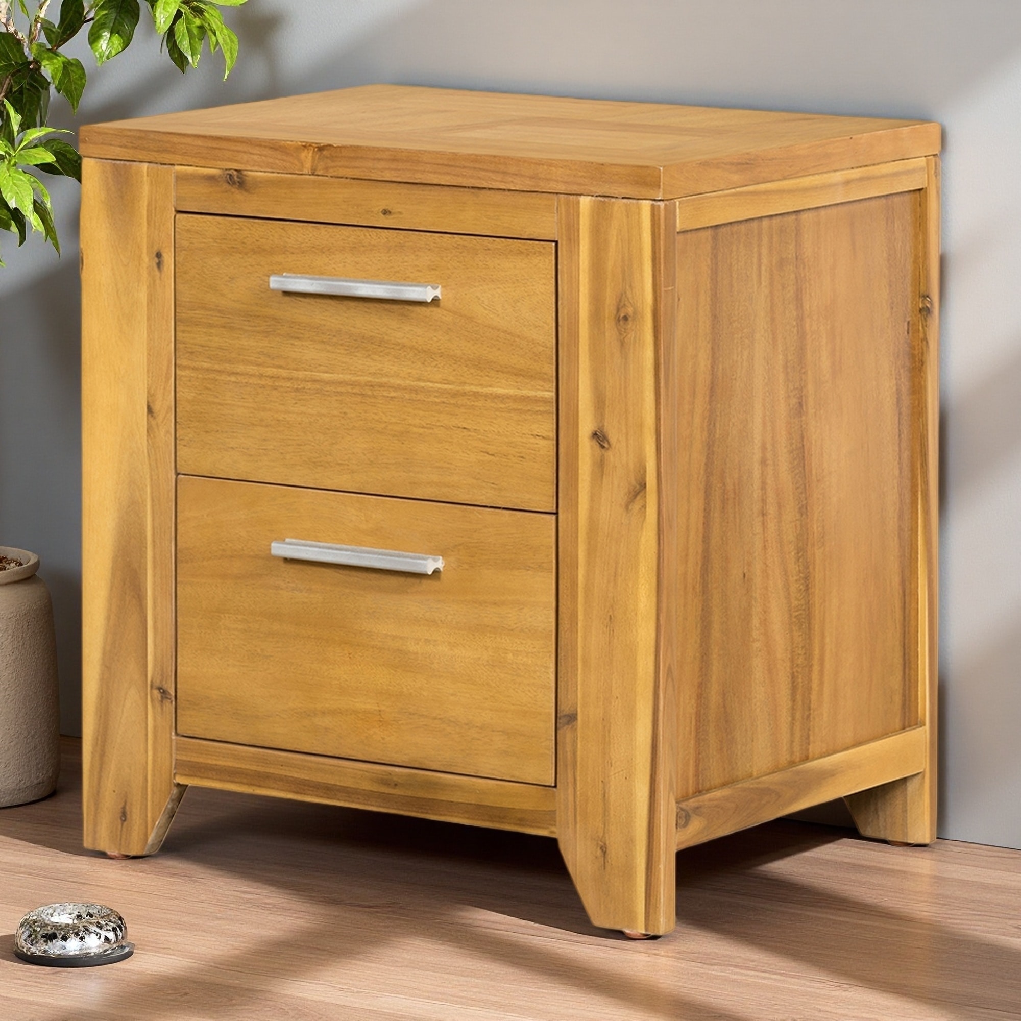 20.7"L MDF & Acacia Wood Nightstand with Smooth Glide Drawers, Compact Bedside Table