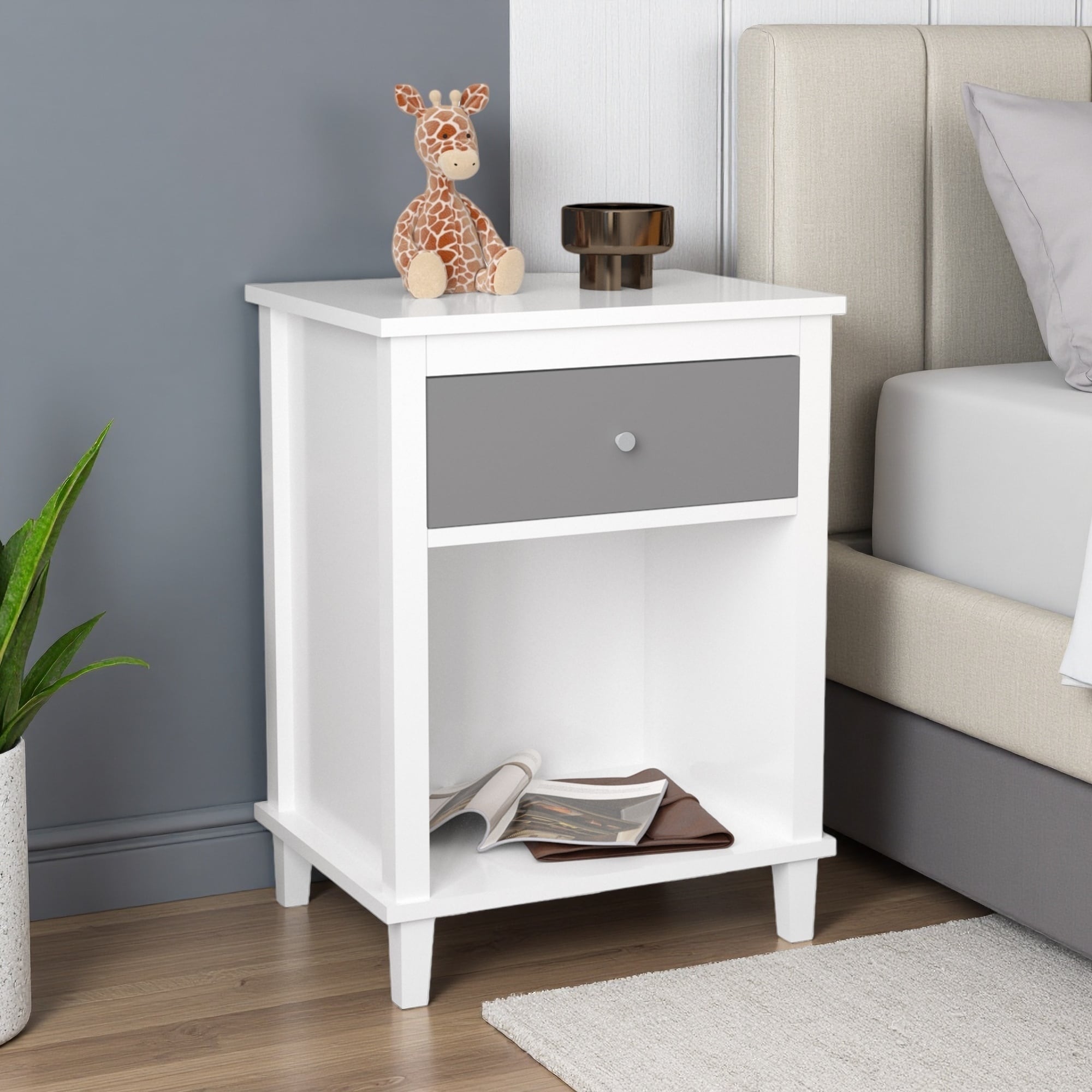 This contemporary nightstand will provide much convenience for your room decoration. Featuring two spacious wooden drawers, this nightstand provides plenty of storage for your toys, books, or daily essentials.