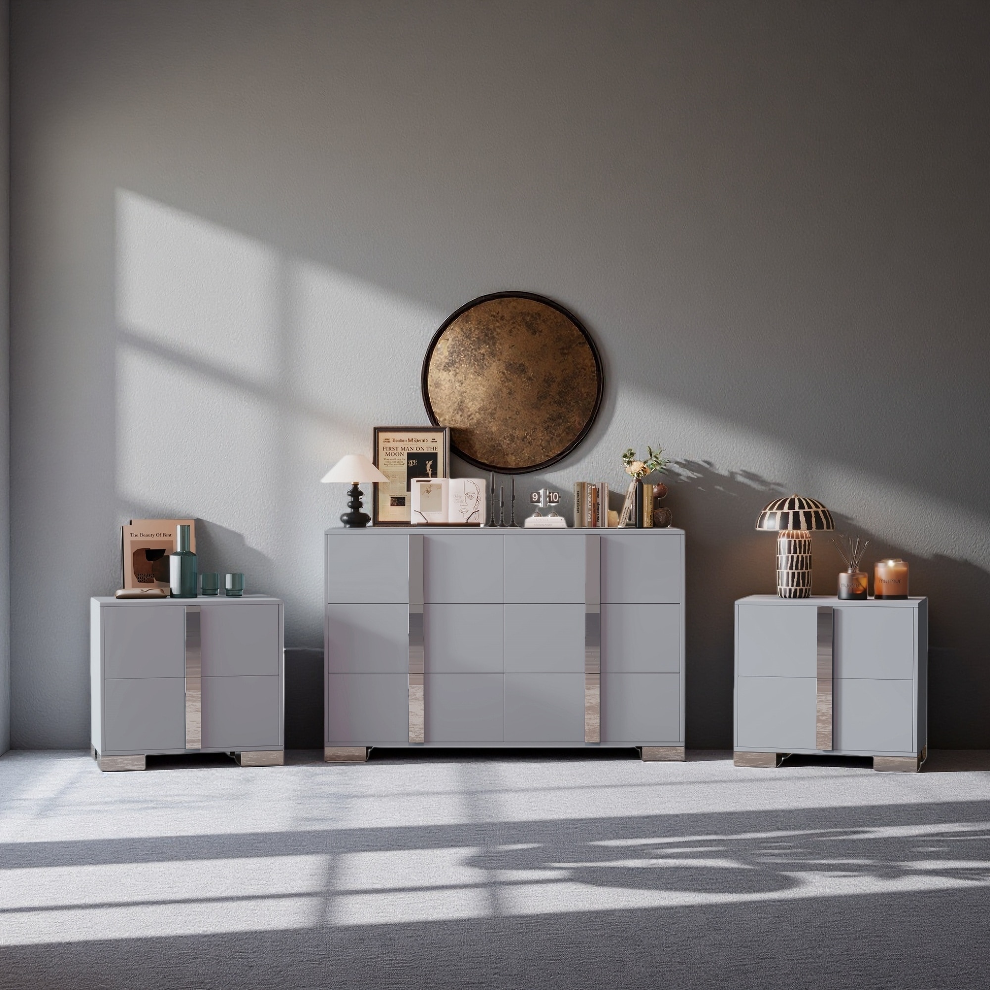 Enhance your home with this elegant 3-piece furniture set, featuring a spacious 6-drawer dresser and two matching nightstands.