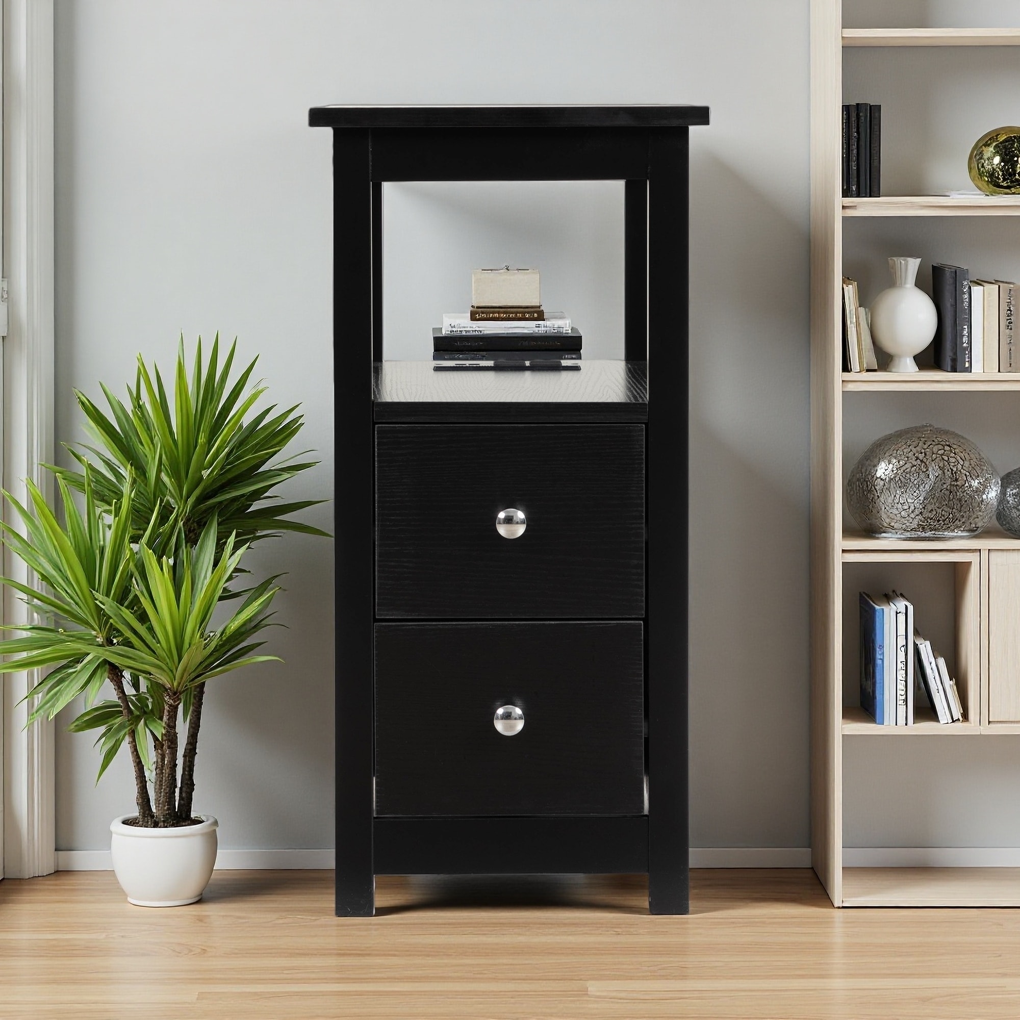 23.62"L MDF End Table with Charging Station, 2 Drawers & Open Shelf