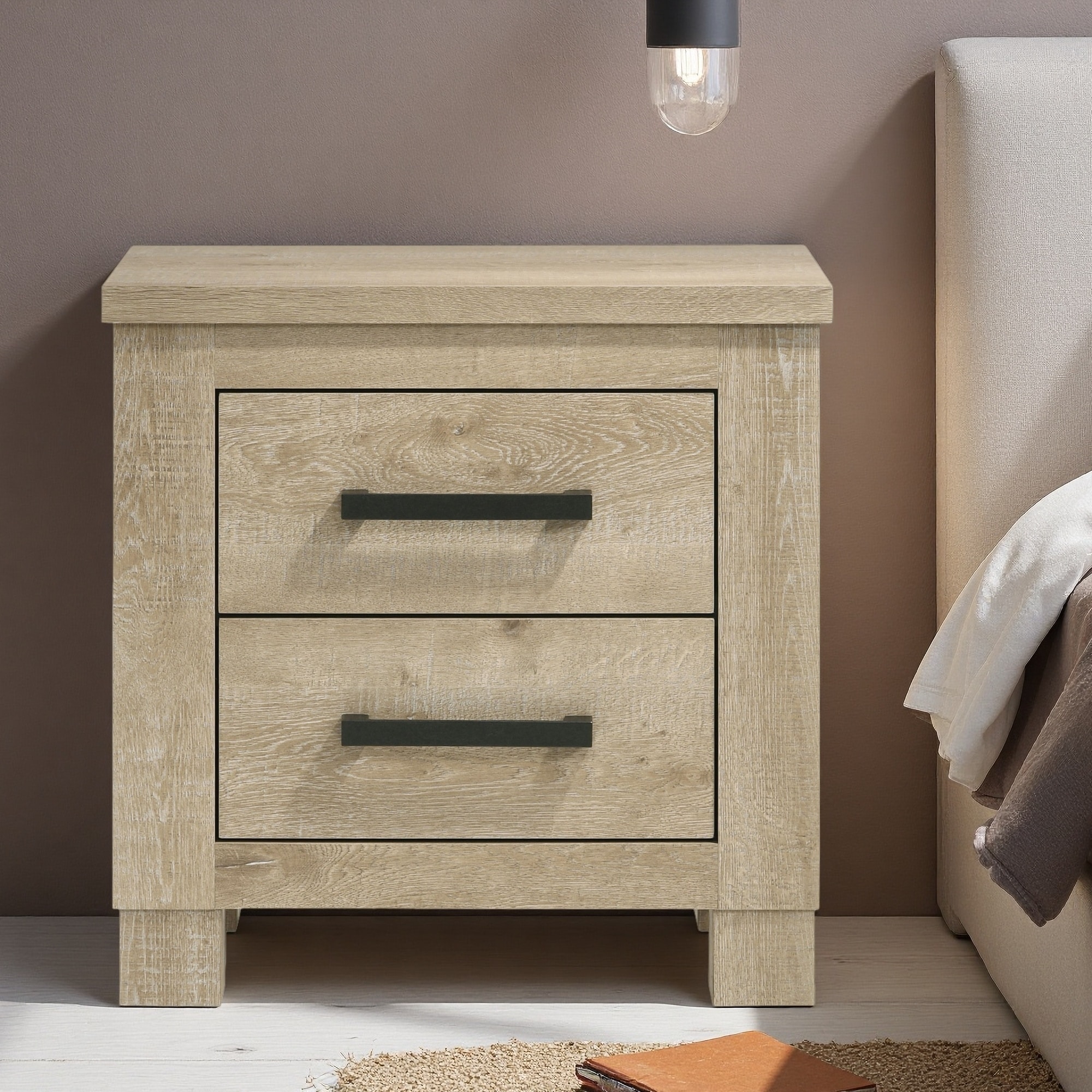 Bring rustic charm and practical functionality to your bedroom with this weathered oak nightstand, designed for both style and storage. Two Spacious Drawers: Ideal for bedside essentials, combining compact design with practical storage solutions.